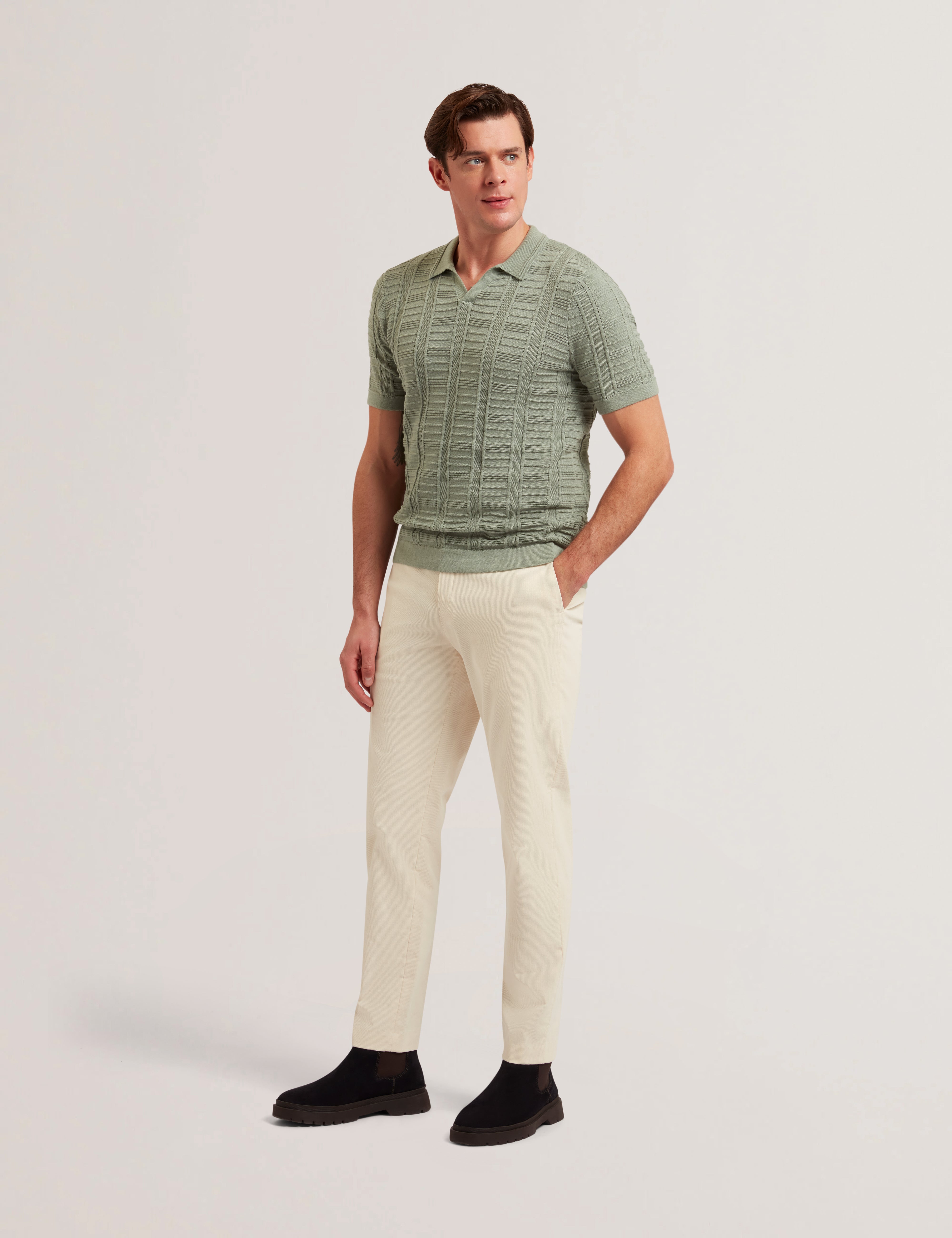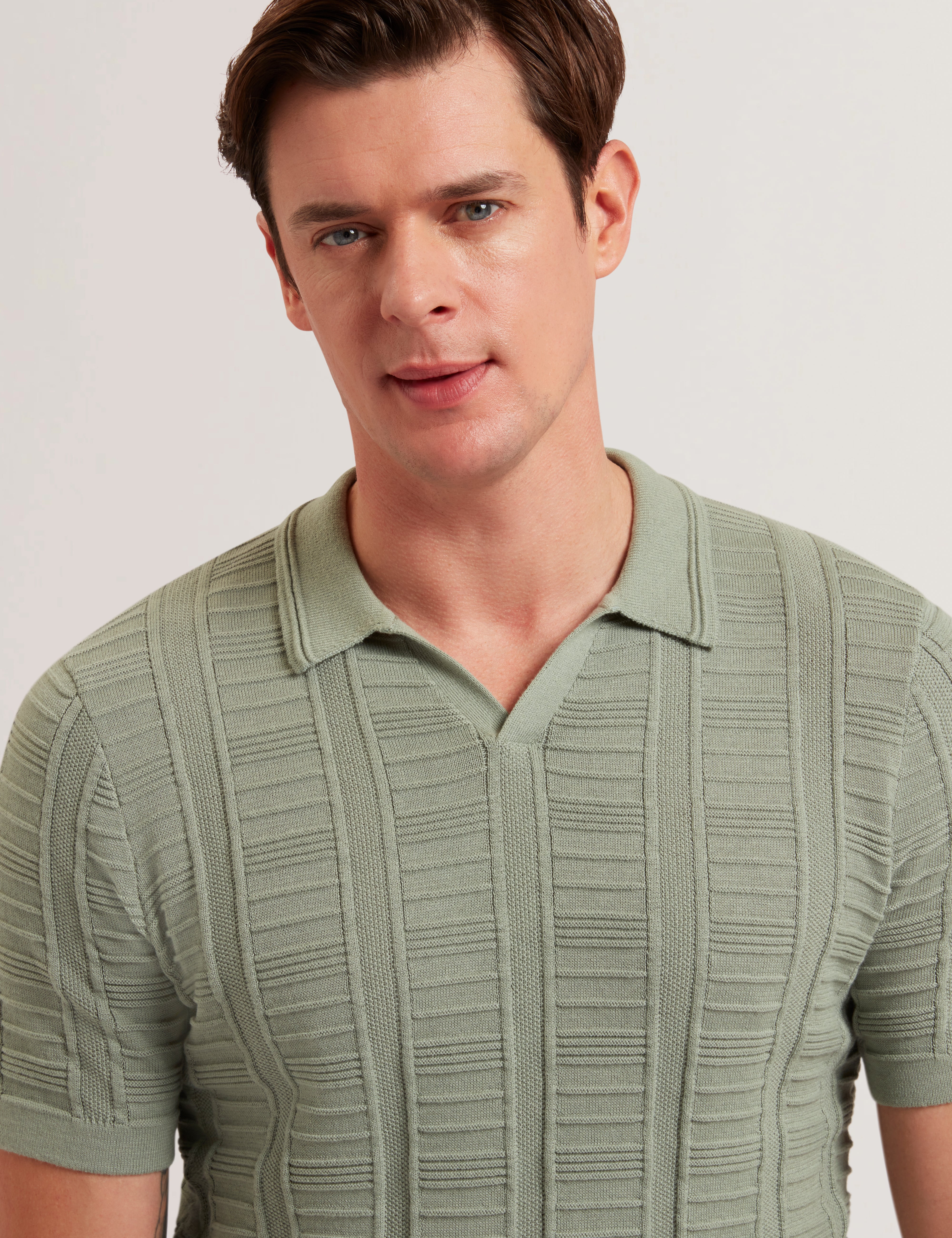 The RUZZA polo is crafted in a lightweight knit with a distinctive vertical textured pattern, offering a contemporary take on a wardrobe staple. Designed with an open-neck collar and short sleeves, it balances relaxed ease with elevated detail. Perfect for versatile styling, from smart-casual looks to laid-back evenings.