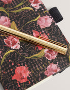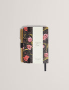The Women's Ted Baker Black Tullsy Mini Notebook and Pen set features a floral houndstooth check print and an elastic closure for secure portability. The accompanying pen is detailed with gold-tone branding, combining elegant design with practical functionality—ideal for jotting down notes on the go.