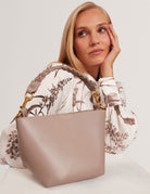 WAVELY: Weave Handle Leather Small Bucket Bag