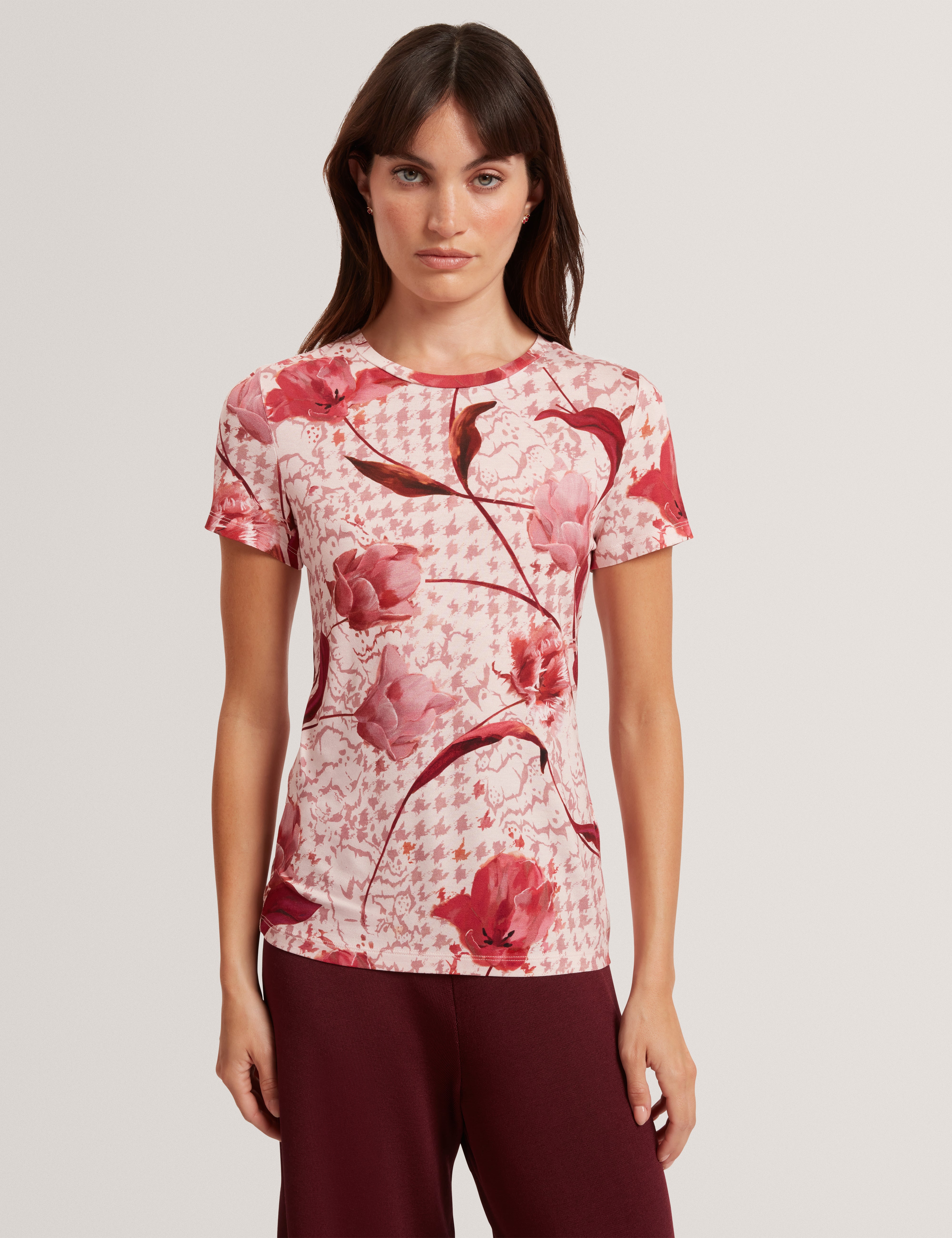 - Floral houndstooth check print