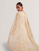 A standout cape maxi that offers a contemporary alternative to the classic kaftan silhouette. Framed in a delicate lace print with a tonal mirrored design, the piece nods to Ted Baker’s “Grand Tour” inspiration - a celebration of the rich legacy of lace makers across the British Isles and the artistry woven into traditional textiles. It delivers a unique, one-of-a-kind interpretation of a classic lace print.