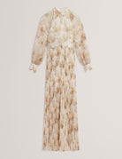 PATSIE: Tie Detail Long Sleeve Floral Maxi Dress