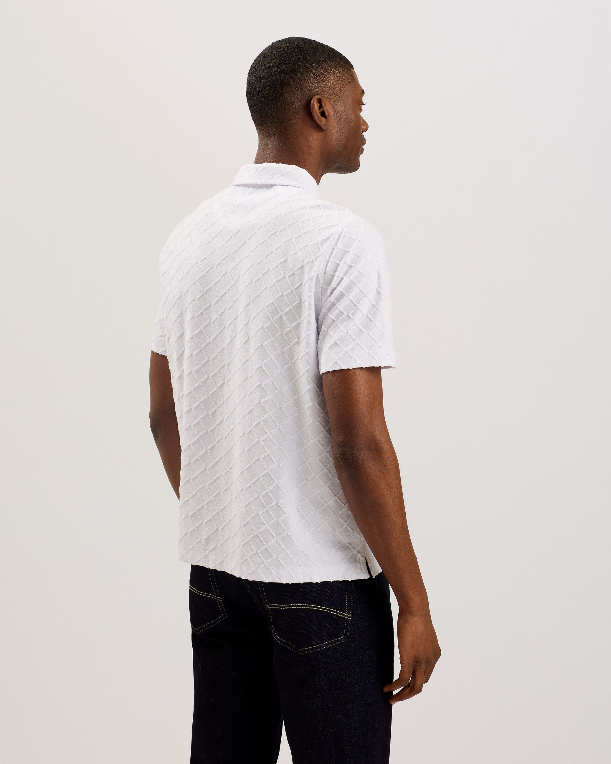 Men's Ansom-Ss Textured Towelling Zip Polo White
