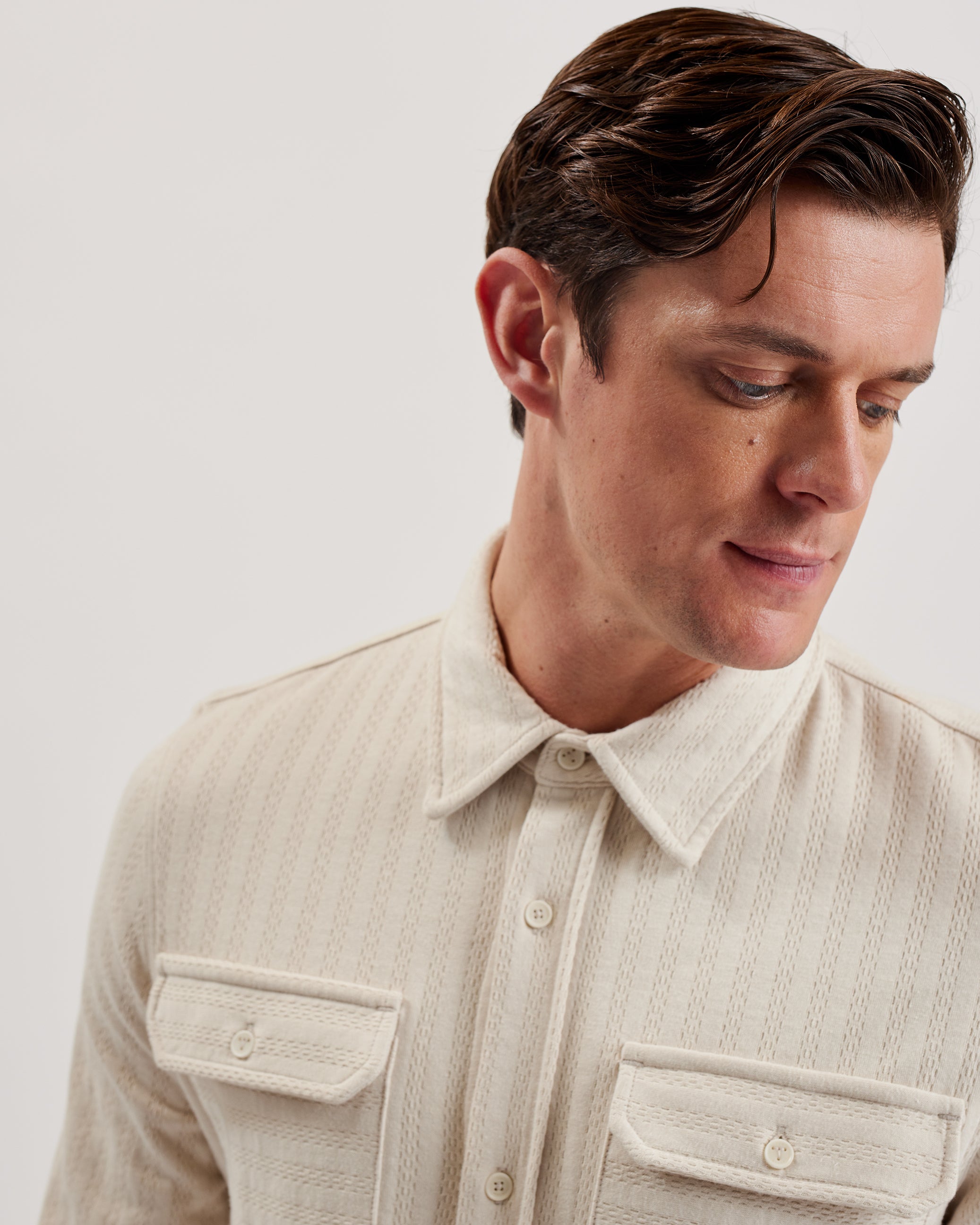 Men's Belza-Ls Regular Fit Textured Shirt Beige