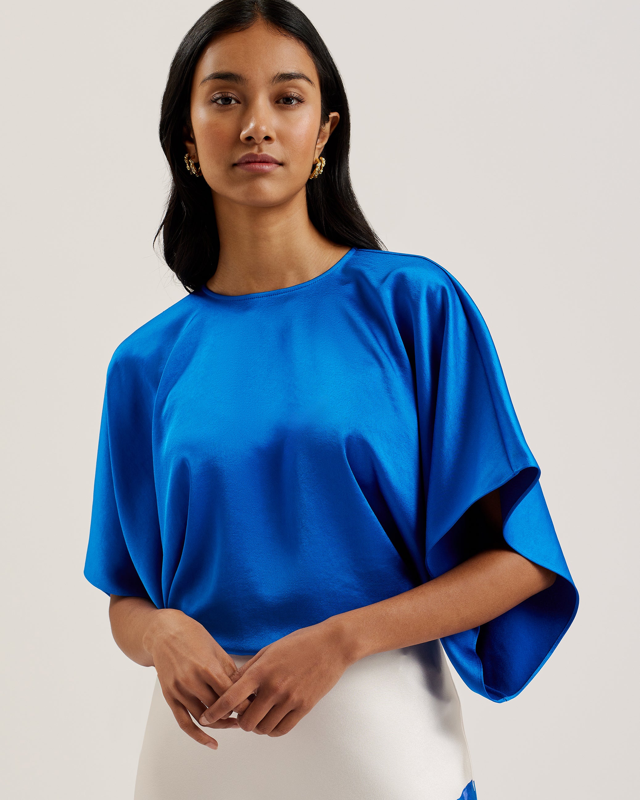 Turn up the volume on your look with the billowy batwing sleeves on this CHERIKA blouse. A plain design and straight silhouette allow for easy styling, so let it be the staple you reach for to switch up your shape.