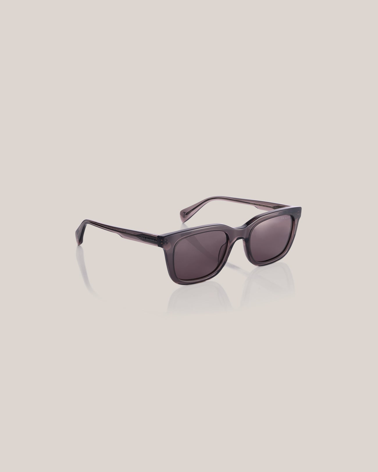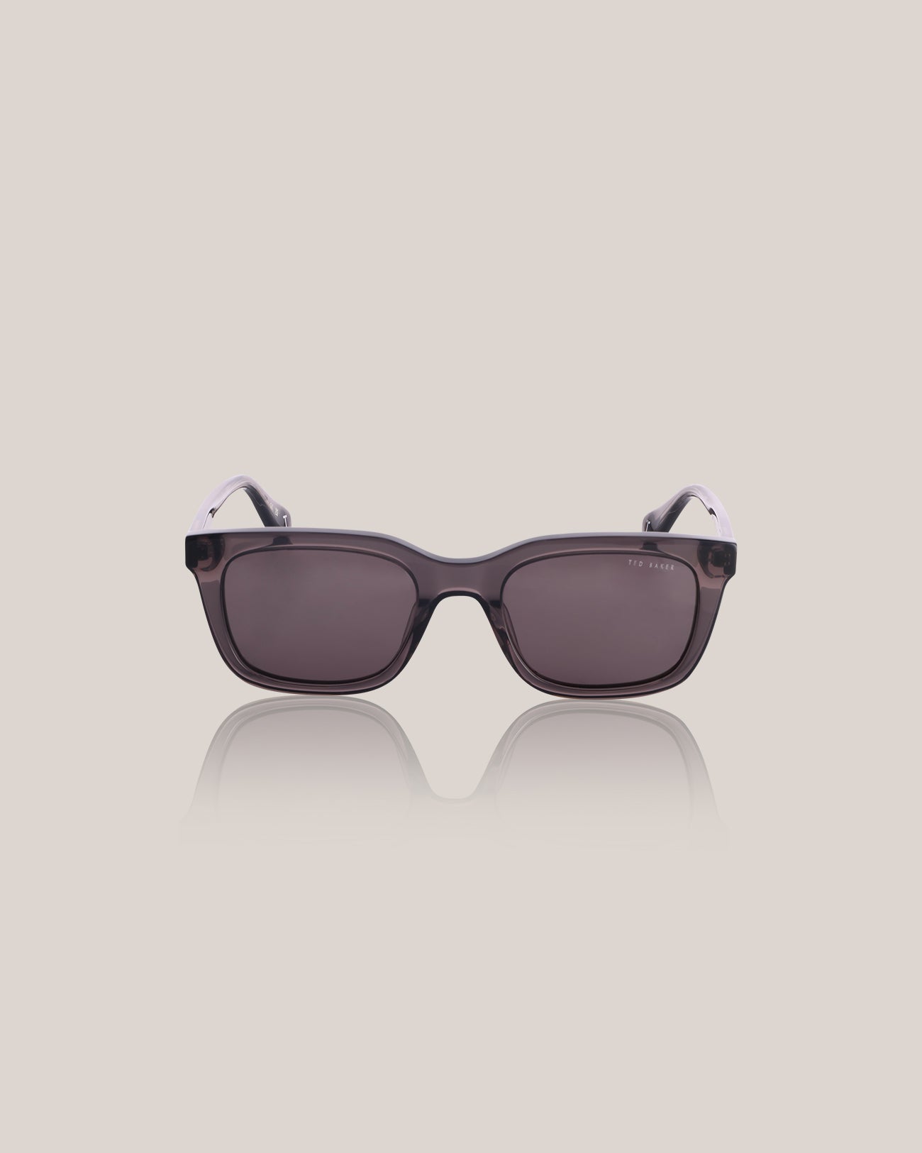 The Ted Baker Men's Birch: Men's Rectangular Sunglasses offer a sleek, rectangular silhouette in gloss crystal grey, complemented by green lenses for optimal UV protection. With dimensions of 52–21–145 mm, they provide a comfortable medium fit, featuring Ted Baker's signature engraved core wire and branding on the temples for a touch of sophistication.