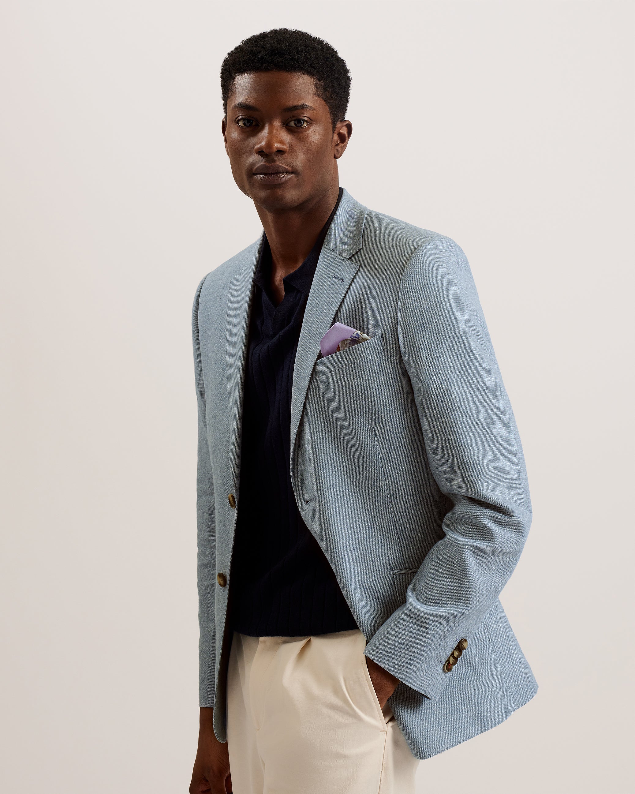 Get suited up for summer with the DAMASKJ blazer. Made from a linen cotton blend with a breathable partial lining and fitted with double vents at the back, it's the perfect jacket to sport to smart events in the warmer seasons. The slim fit brings that tailored look, complete with a notch lapel and button fastening to keep you looking sharp.