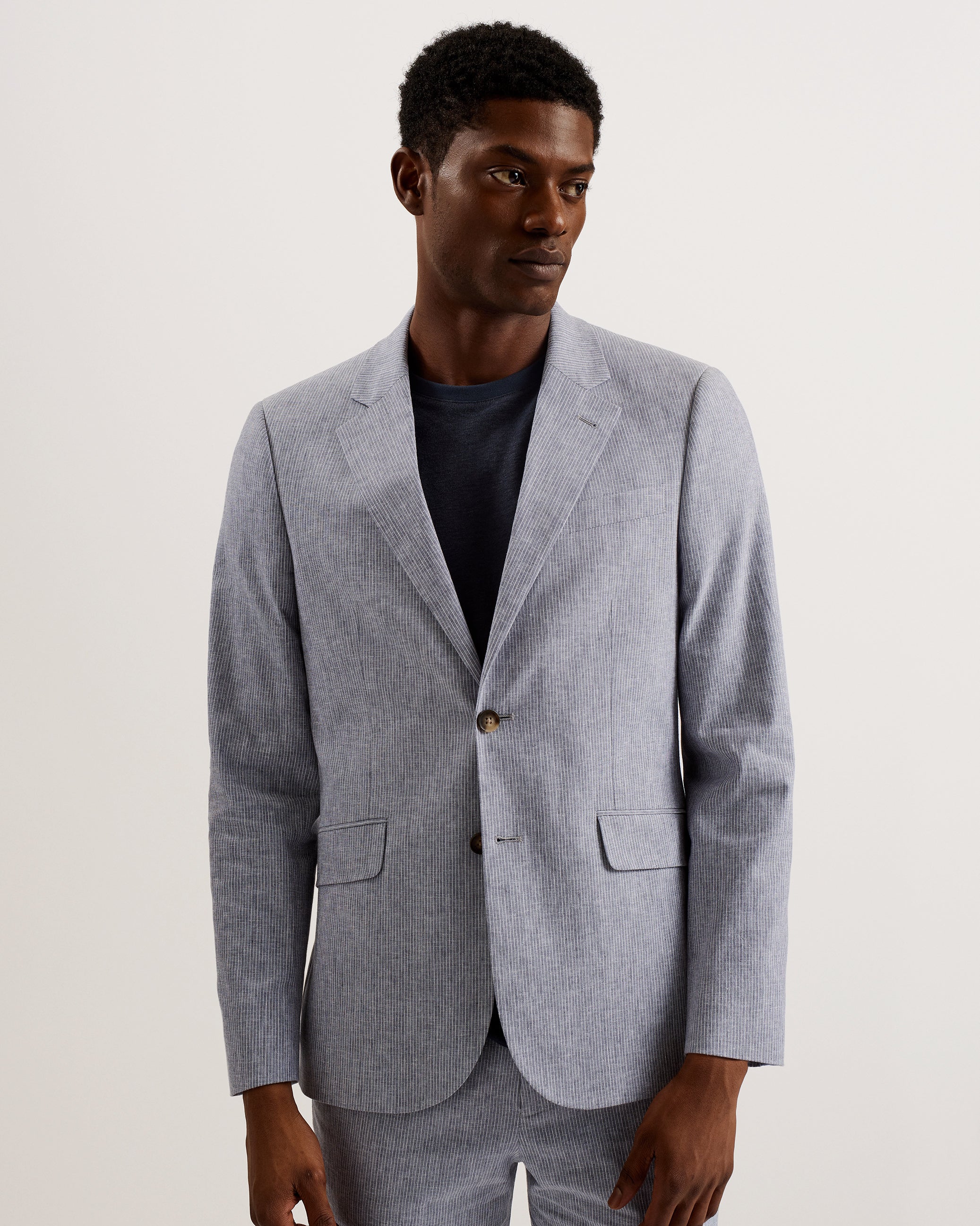 On the lookout for summer appropriate suits? FRANKJ has you covered with its comfortable cotton blend and double vented back for breathability. The slim fit and notched lapels keep it smart, whilst the subtle pinstripe design brings texture to this snappy blazer. Wear with suit trousers or more casual chinos to complete the look.