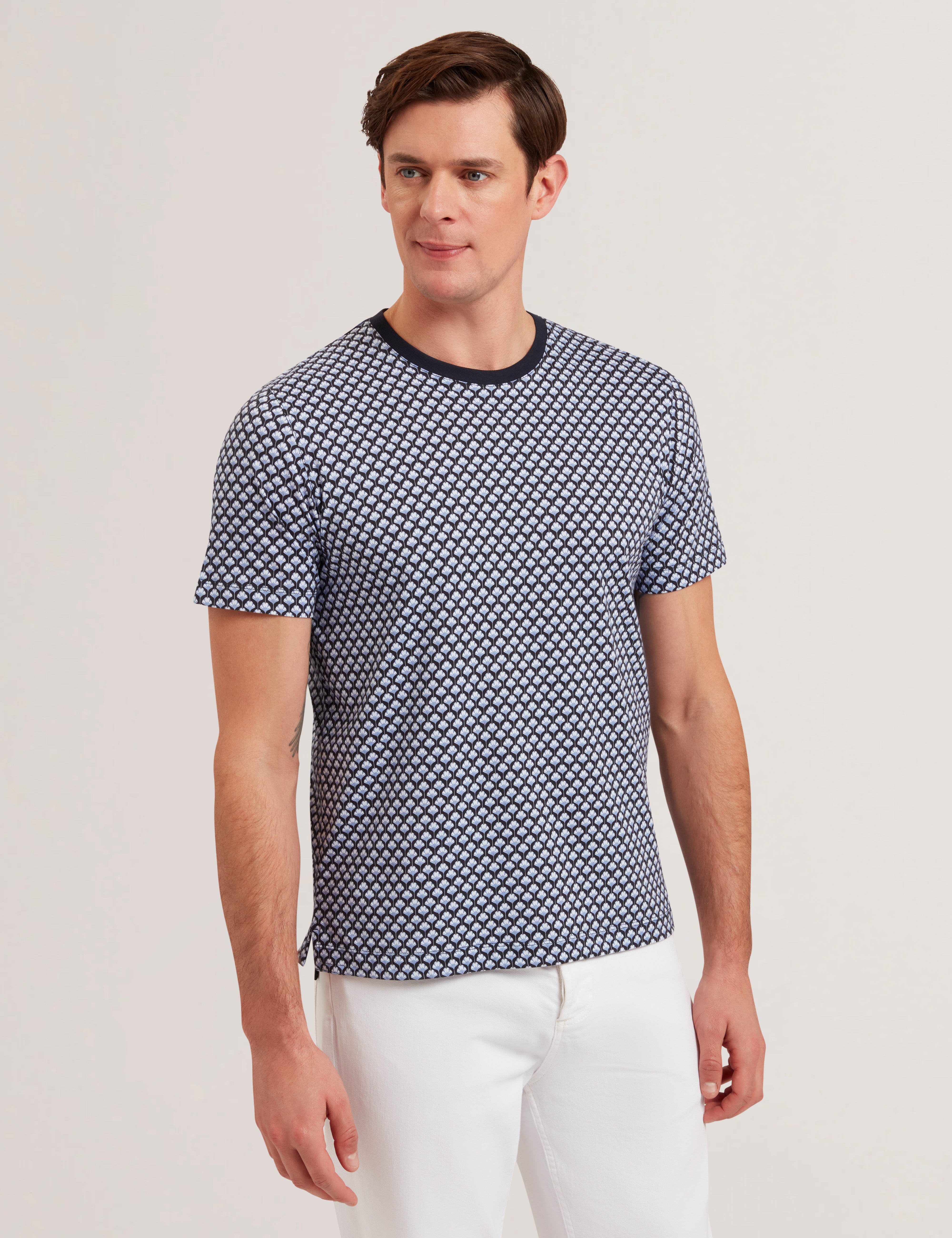 Pair it with jeans and sneakers for effortless casual style, or layer it under a jacket for a smart-casual finish. A versatile T-shirt that keeps your look fresh and modern.