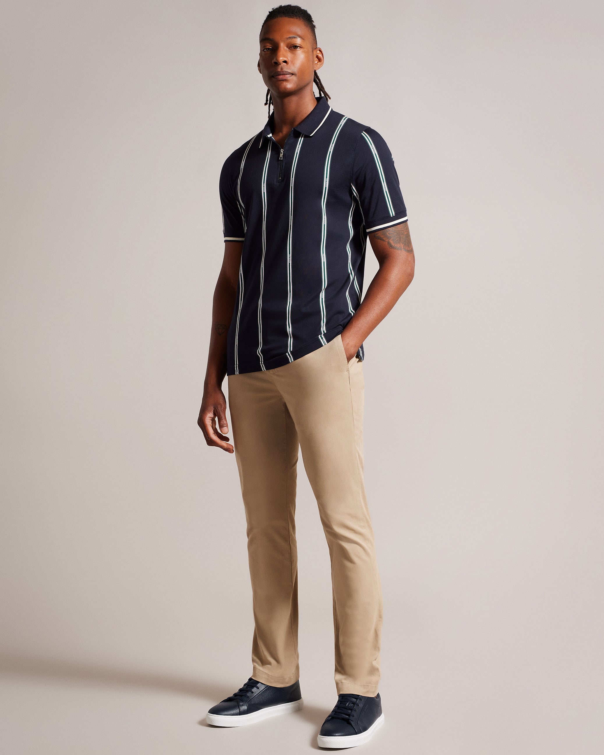 Some things never go out of style. SISONS' zip placket puts a contemporary twist on the traditional polo shirt, and branded stripes make this staple a real showstopper that you can wear any day of the week.