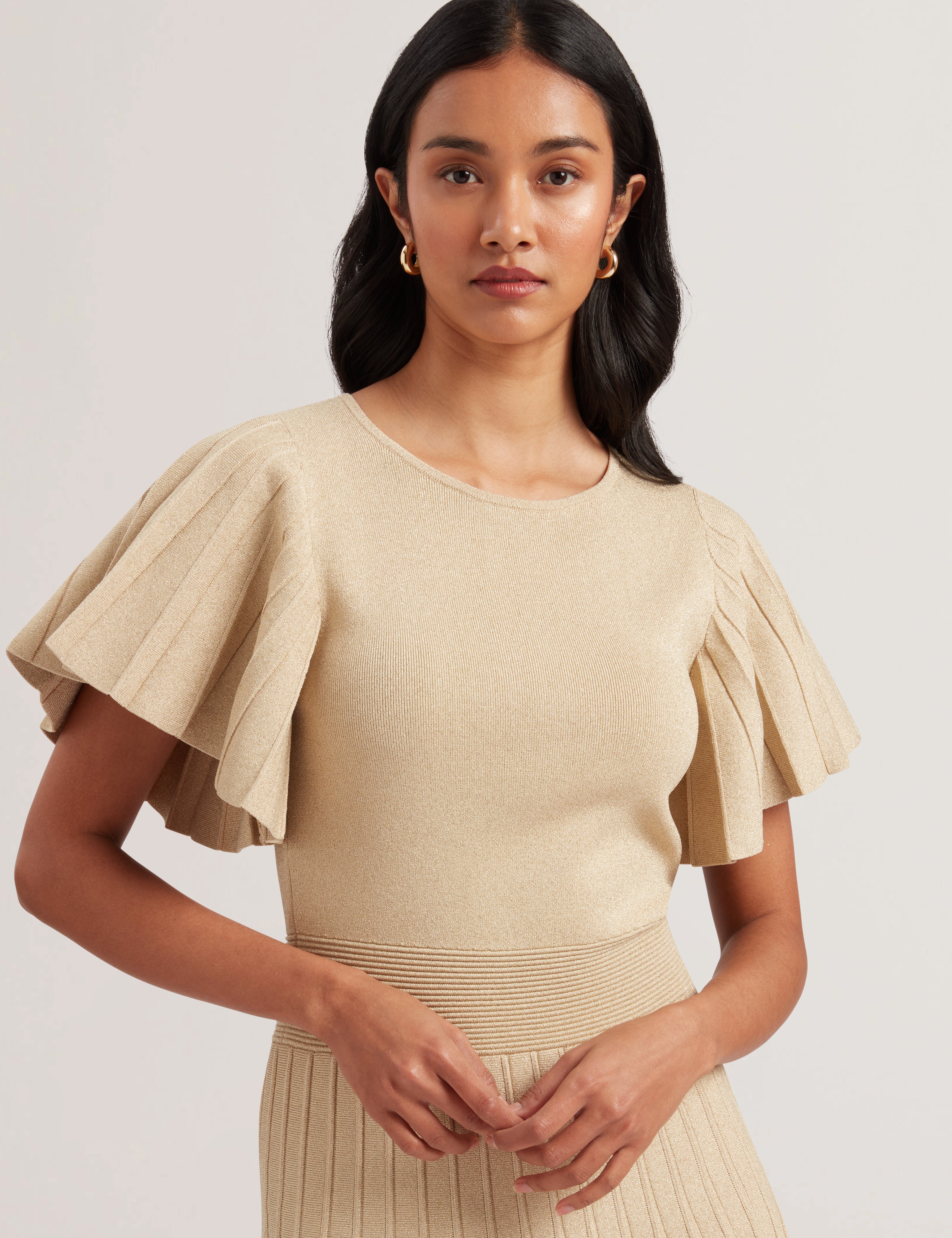Women's Madisnn-Metallic Angel Slv Knit Skater Dress Gold