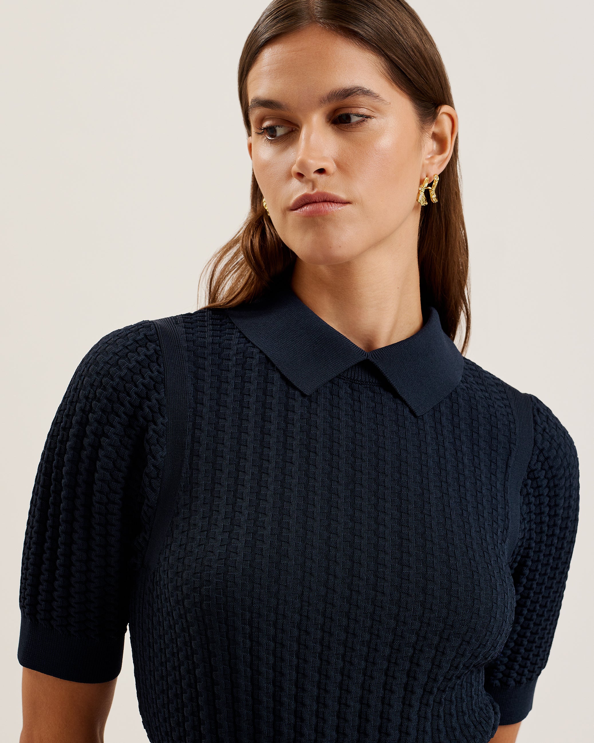 MIIAAA is made to charm with its flattering skater style, classic collar and puffed short sleeves. This dress is made with a soft and stretchy knitted material, with a rick rack stitch on the bodice to add texture and finished with an exposed zip fastening. From days in the office to lunch with the girls, this piece makes a sweet fit.