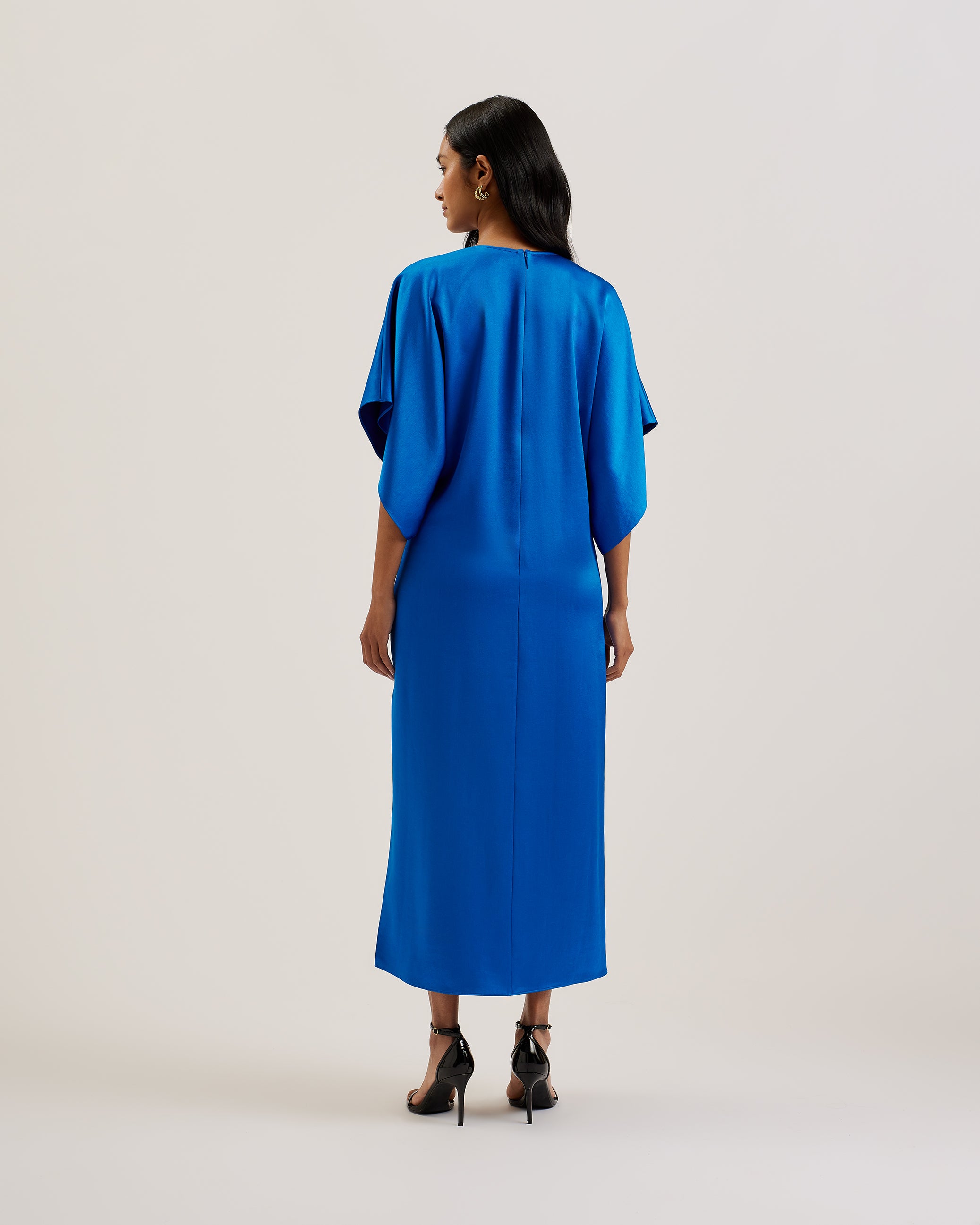 This stunning midi dress is the epitome of modern elegance. The flowing batwing sleeves and dramatic side split create a head-turning silhouette that will have all eyes on you. Crafted from a luxuriously soft, stretchy material, the NAVALA dress provides the perfect balance of style and comfort. Transition effortlessly from work to weekend - this versatile piece is a wardrobe essential.