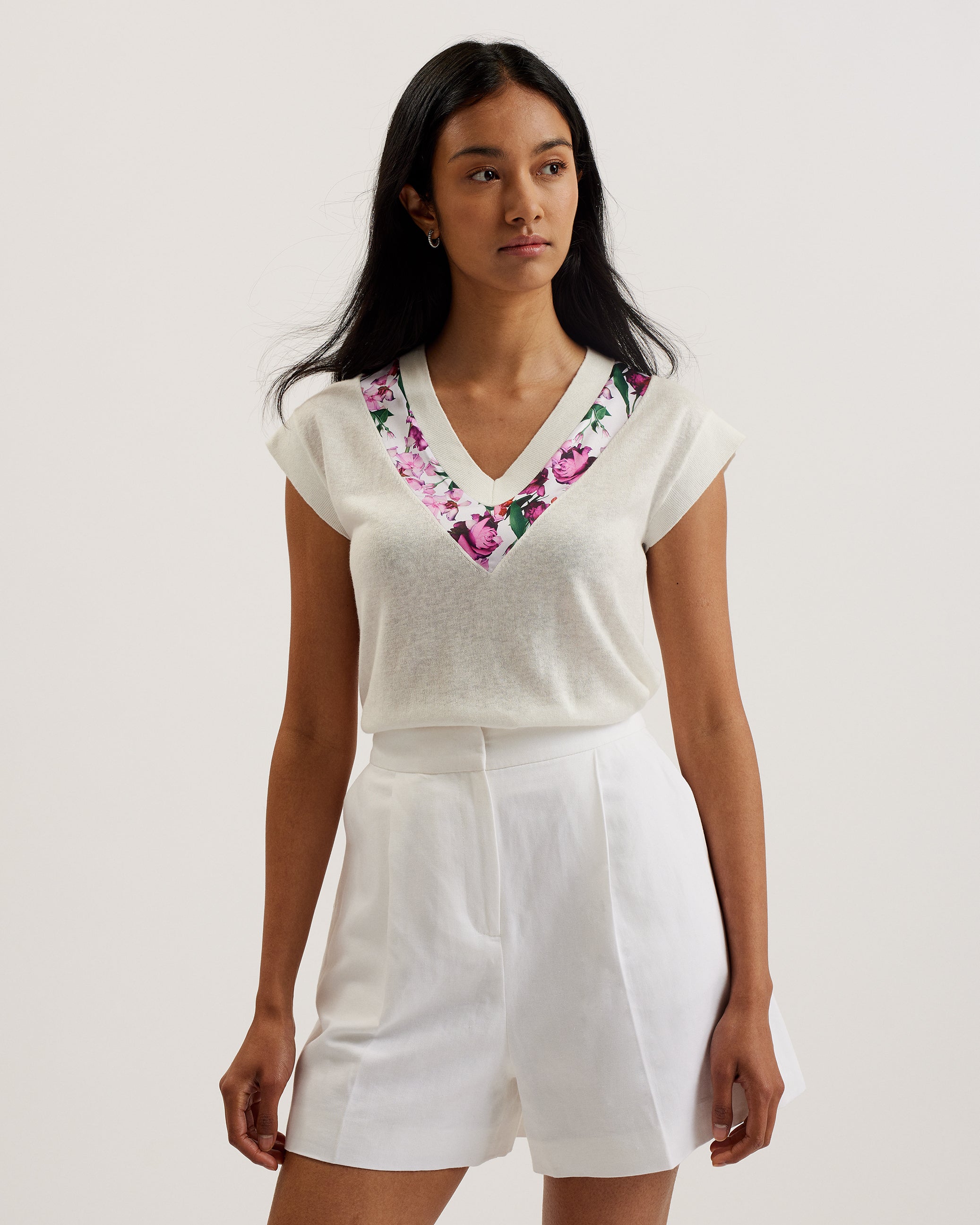 Women's Phyllis-Short Sleeve Woven Trim Knit Top Ivory