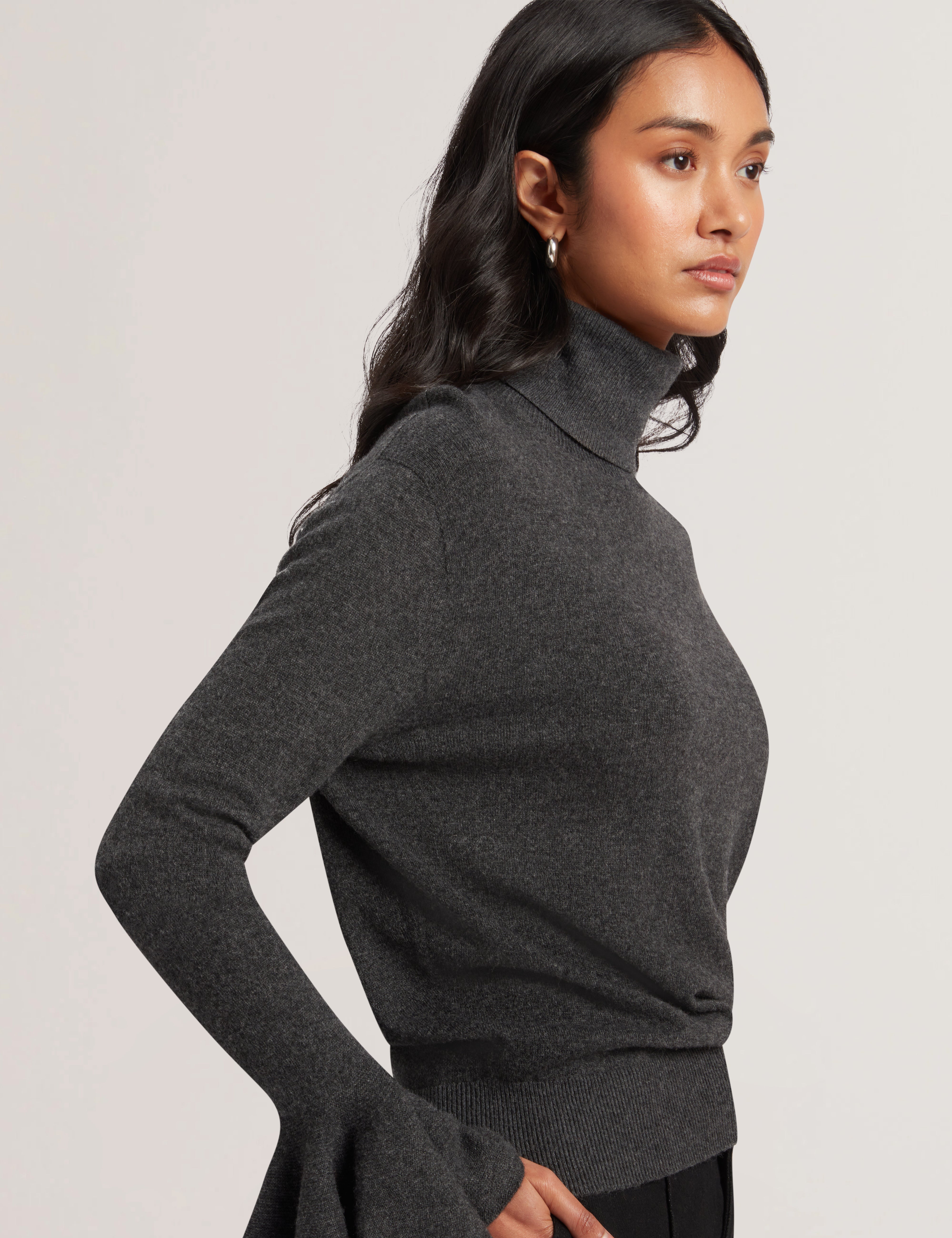 Women's Tamsenn-Roll Neck Fluted Sleeve Sweater Dk-Grey