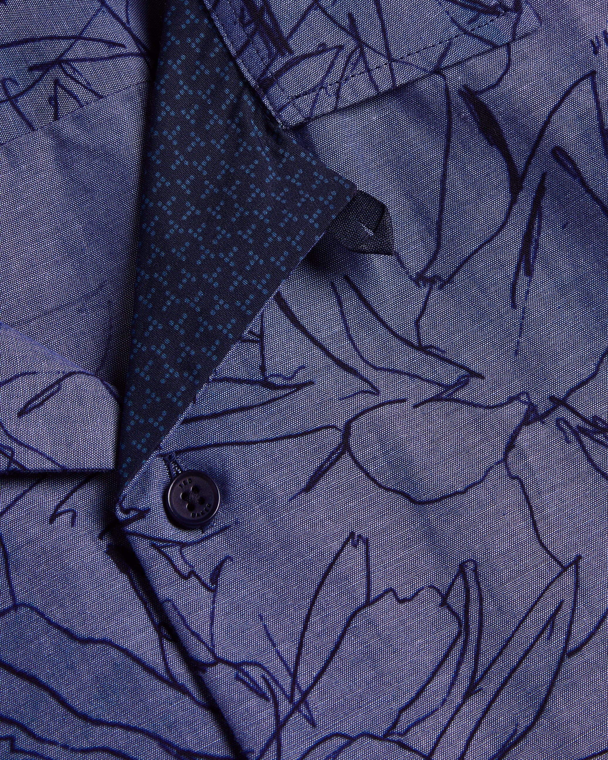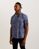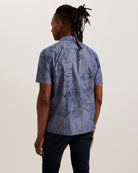 Men's Terroni-Ss Regular Chambray Floral Shirt Dk-Blue