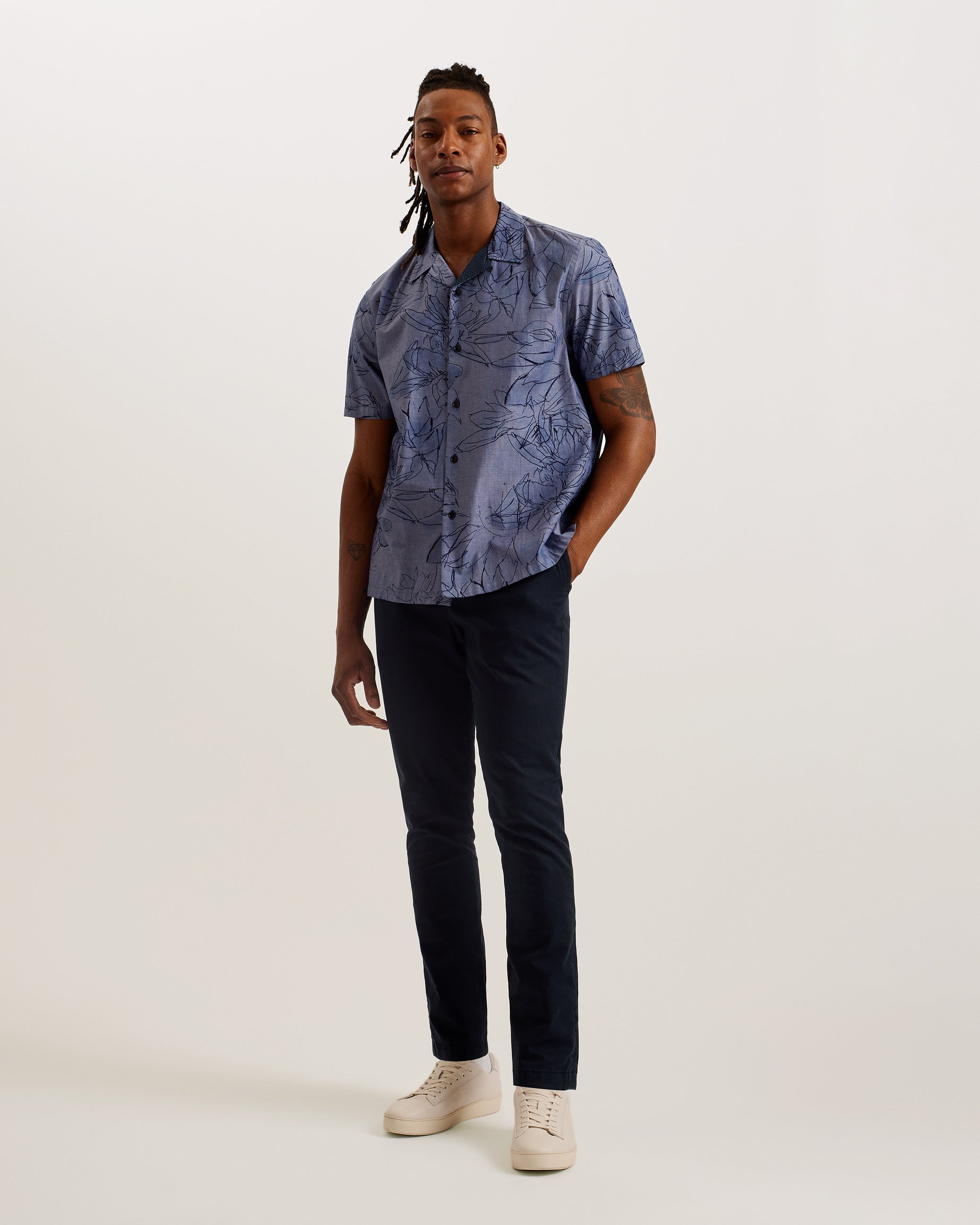 Step out in style with the TERRONI Short Sleeve Regular Chambray Floral Shirt. This eye-catching piece is the perfect blend of classic and contemporary.