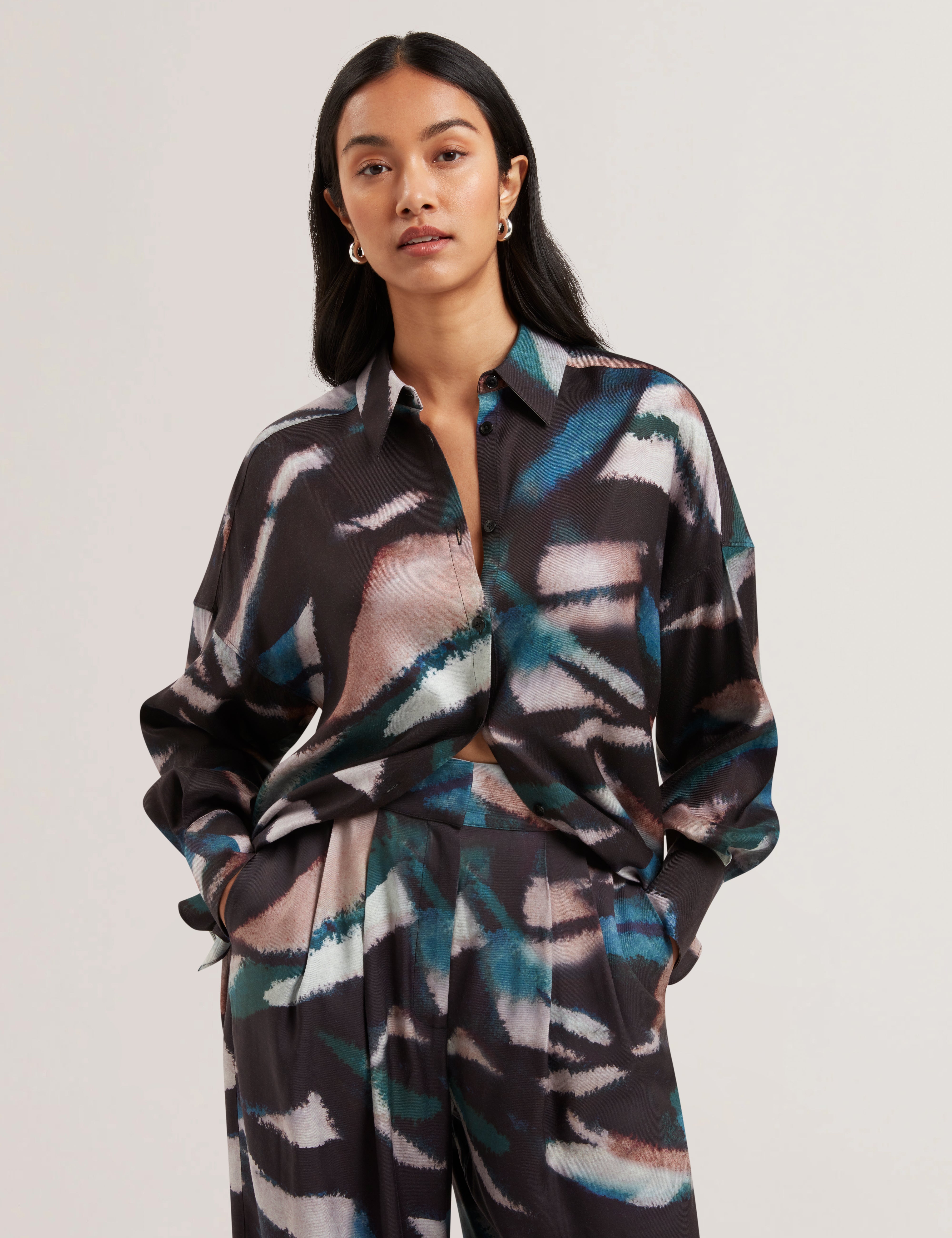 Make a bold statement in the TROPIZA Printed Oversized Boyfriend Shirt.