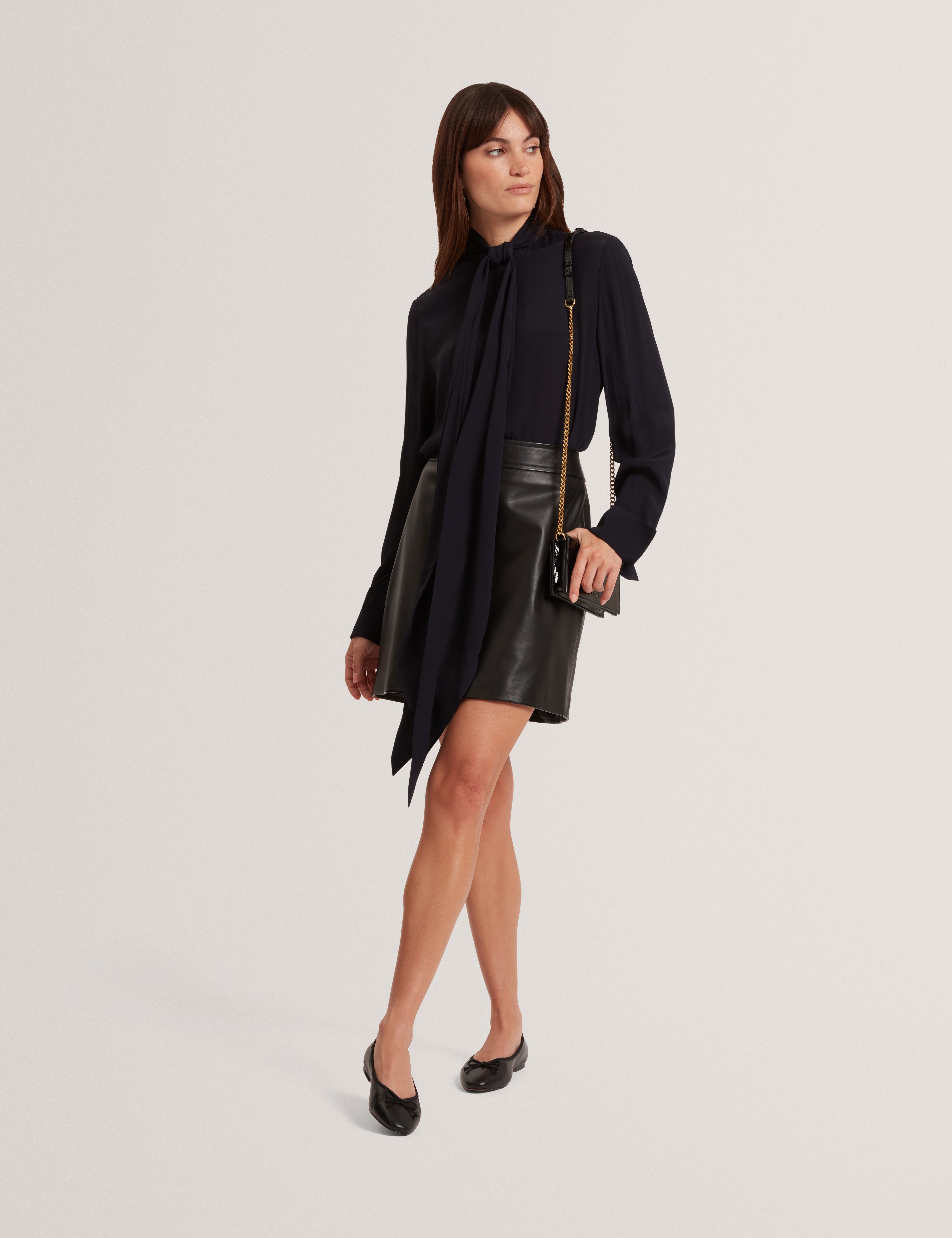 VIKTA: Leather Mini Skirt with Stitch Detail