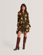 INDIVIA turns the classic shirt dress silhouette into a fun and flirty statement. Designed with a warm-tone floral check print and a flippy pleated skirt, this button-up mini is poised to charm from day to night.