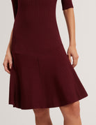 Flirty, flattering, and effortlessly put-together MAHRAA is your new wardrobe favourite. Crafted in a soft-touch knit with a touch of stretch blending cosy comfort with polished elegance, featuring a fitted bodice a full skater style skirt and short sleeve with a unique alternate rib design on the bodice and skirt.