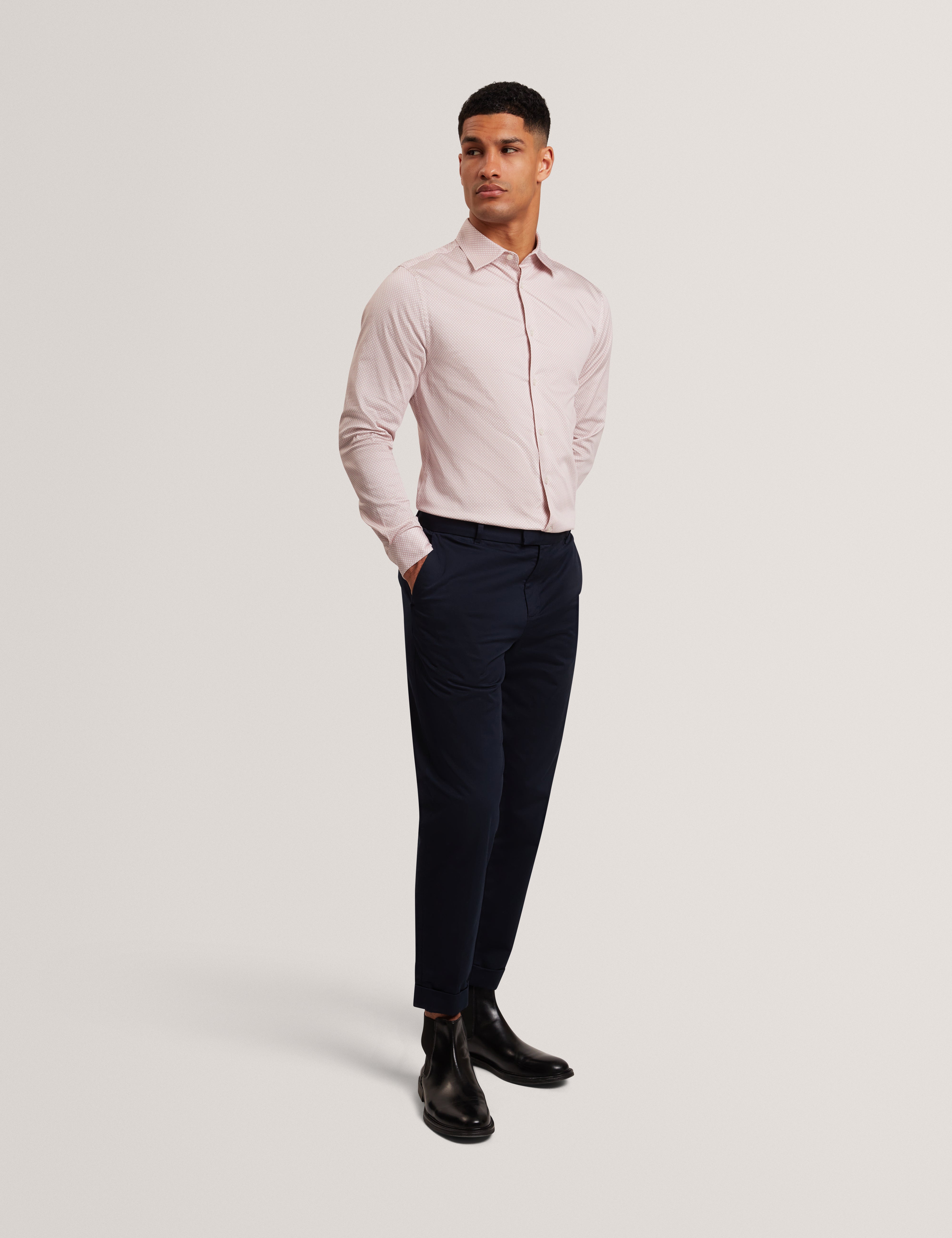 - Slim fit with tailored finish