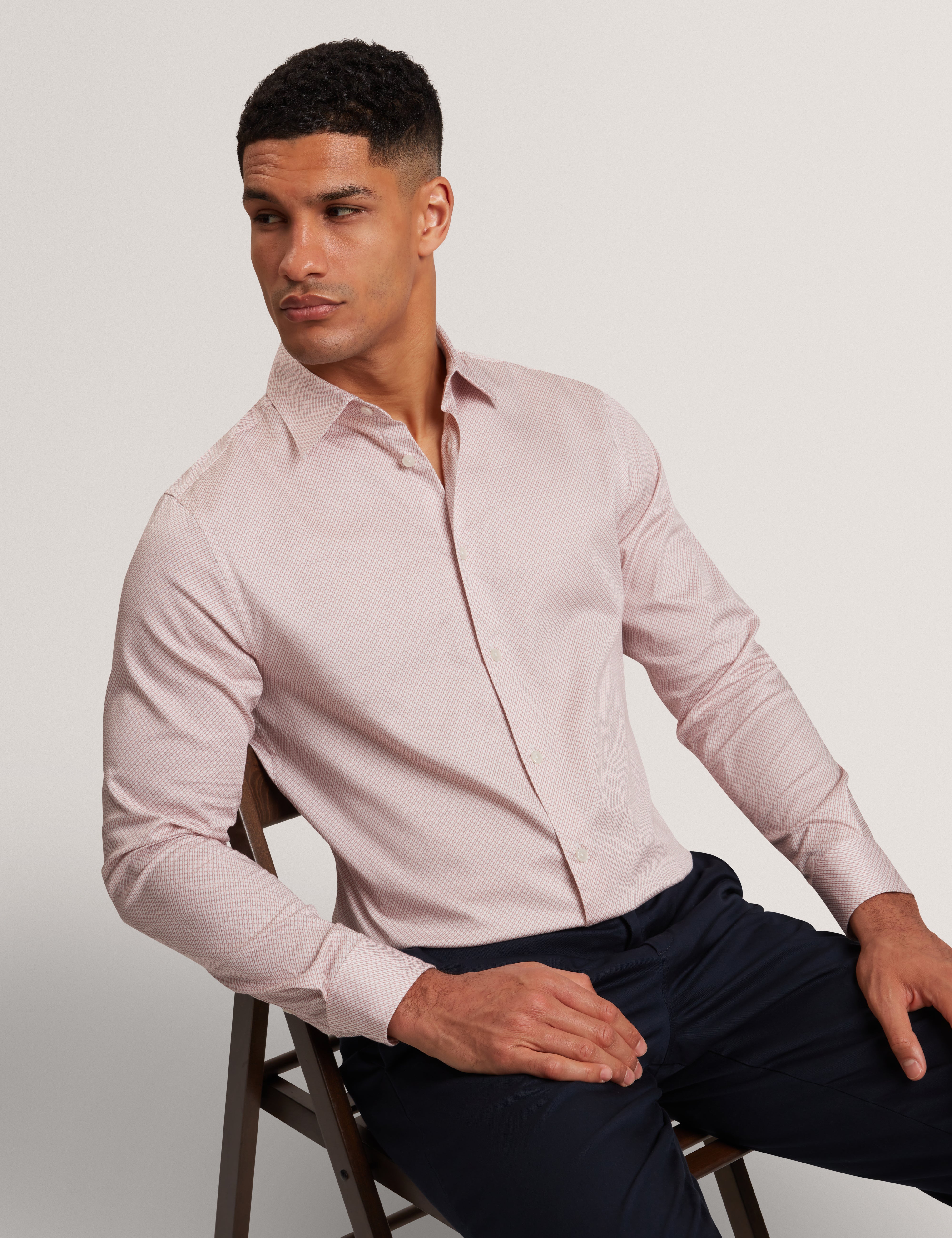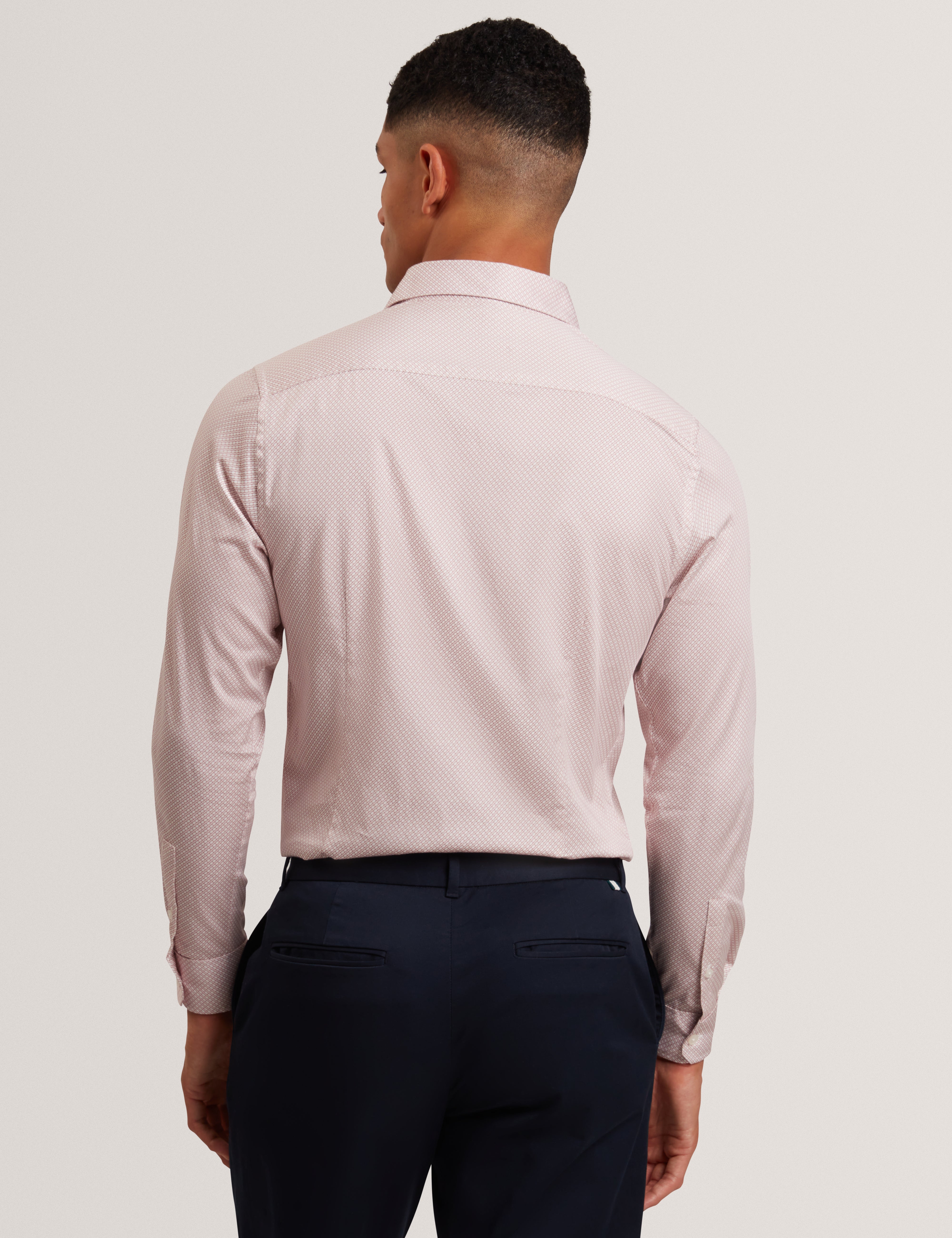 A refined slim-fit shirt featuring a striking geo print, ideal for work or weekend wear.