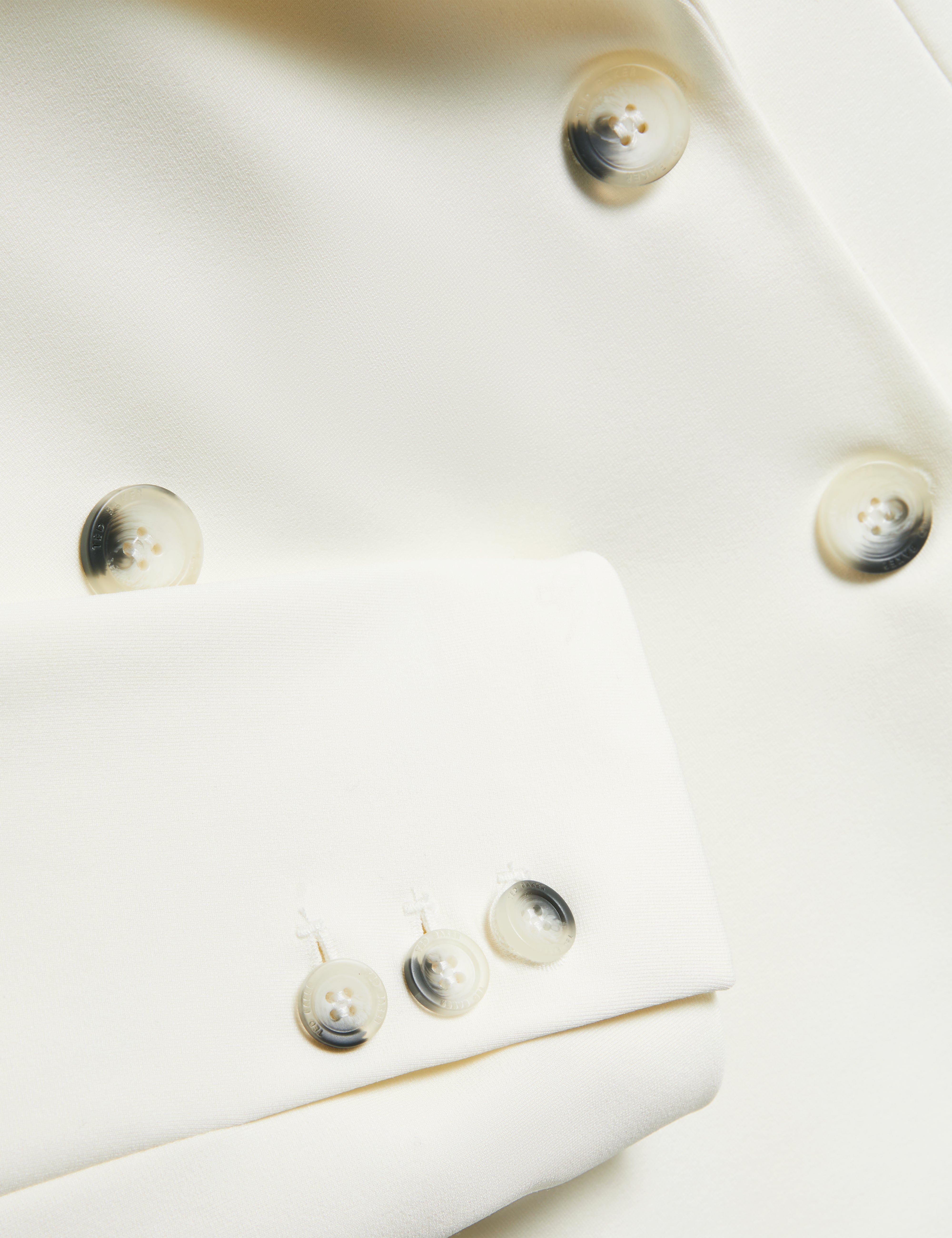 Sophisticated and polished, the Ted Baker Pawlyn Blazer features a tailored ponte fabric construction with a classic double-breasted design. Perfect for office wear or smart-casual occasions, it adds a refined, contemporary touch to any outfit.