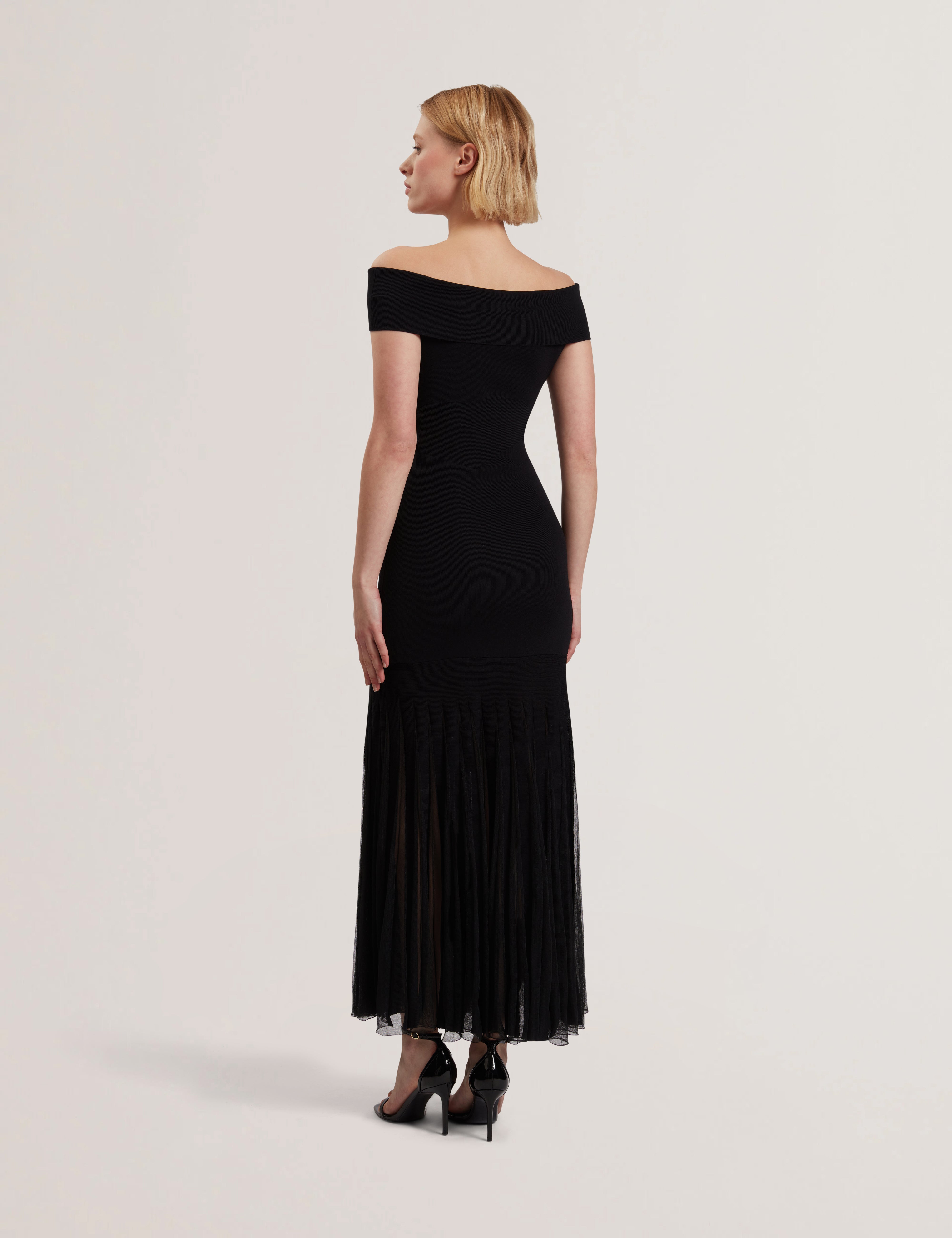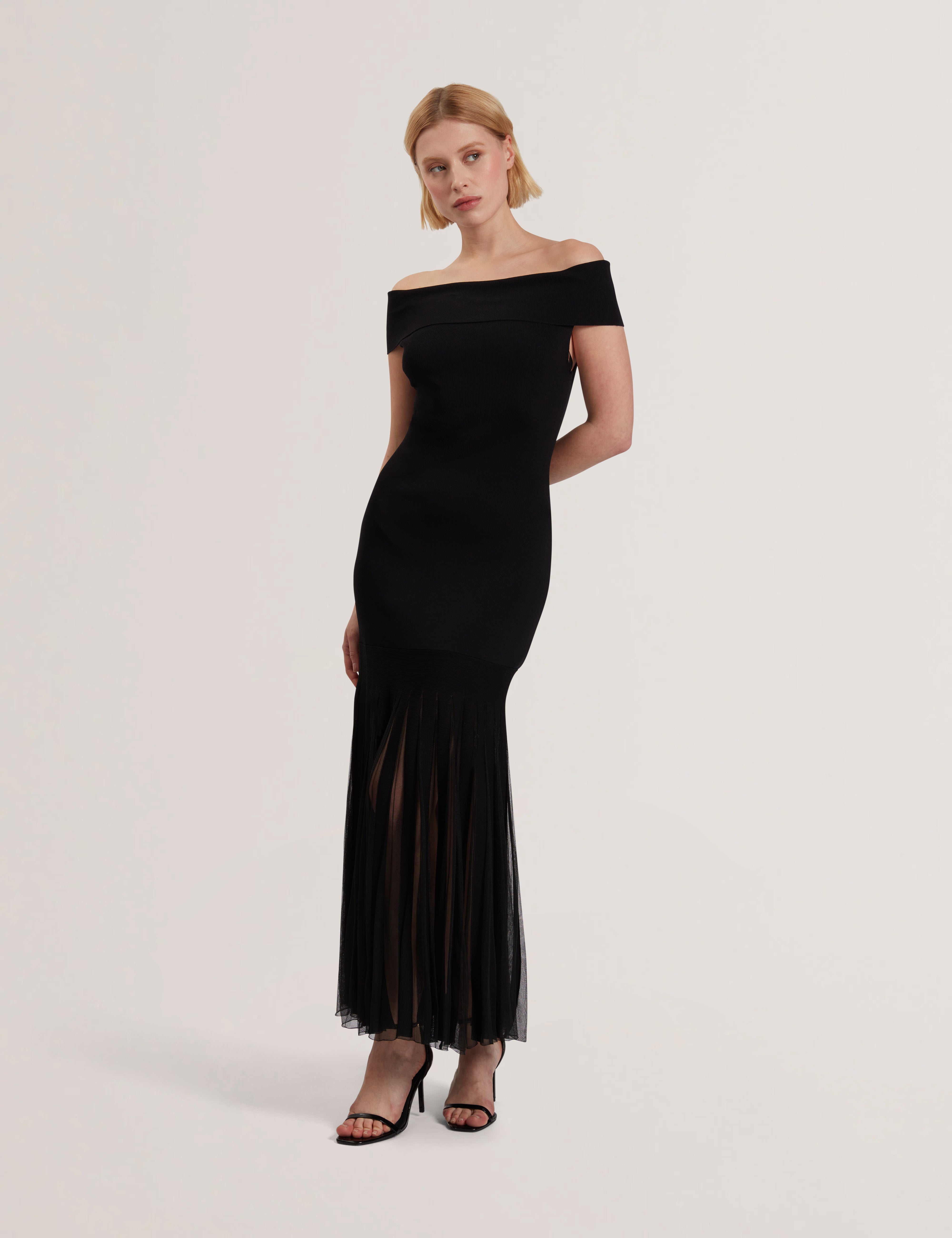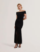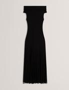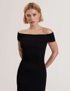 Women's SUANNAA-Dropped Waist Off The Shoulder Knit Dress Black