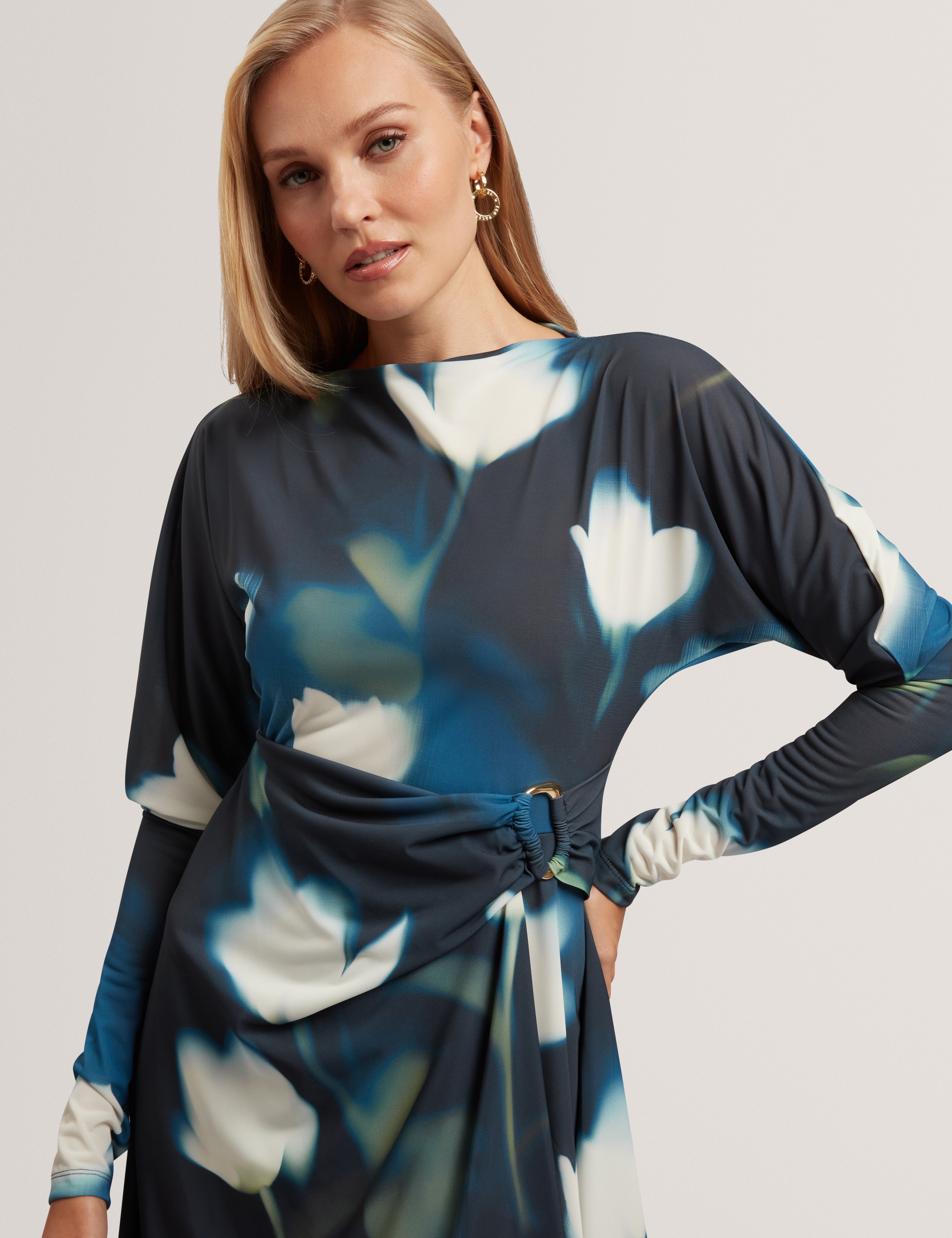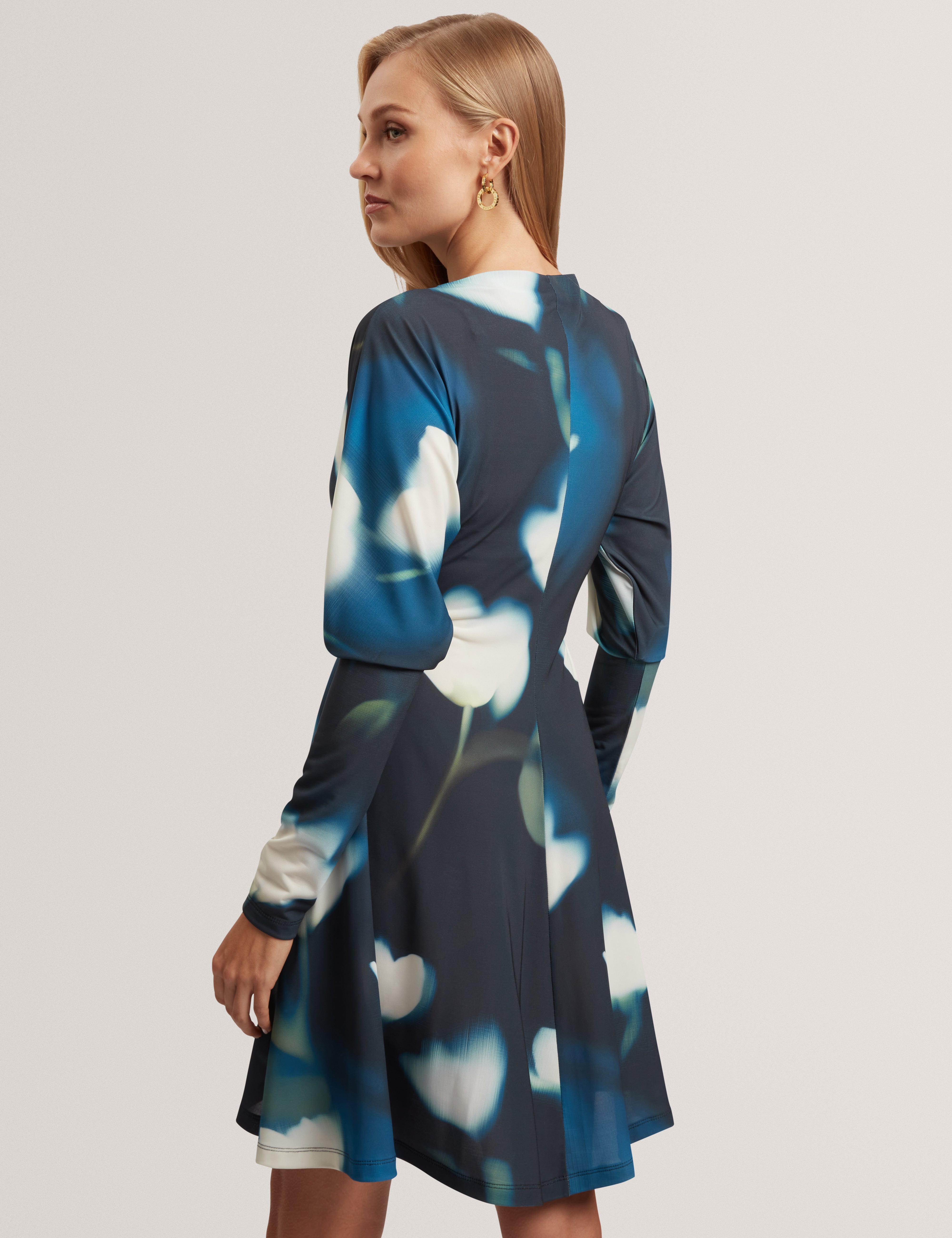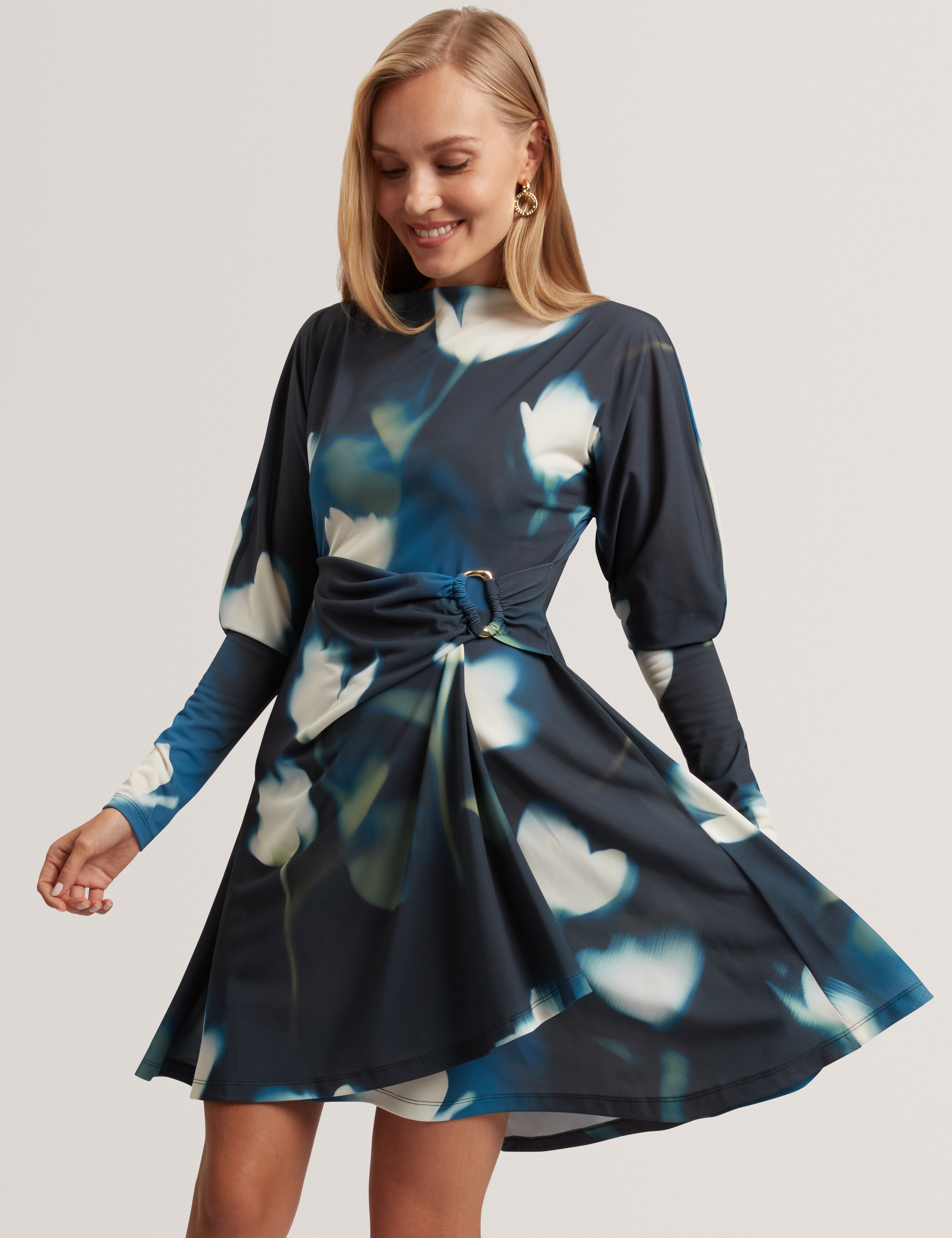 TAIRIEE: Printed Jersey Wrap Mini Dress