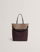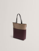 Meet WYNSLOW — contemporary structure with a refined Ted Baker edge. This large tote features a sophisticated colourblock design, blending deep wine and soft taupe tones for a rich, modern finish. Dual top handles and a detachable woven shoulder strap offer both versatility and style, while subtle gold hardware brings a touch of luxury. Spacious, sleek and effortlessly elevated — WYNSLOW is your everyday statement piece.