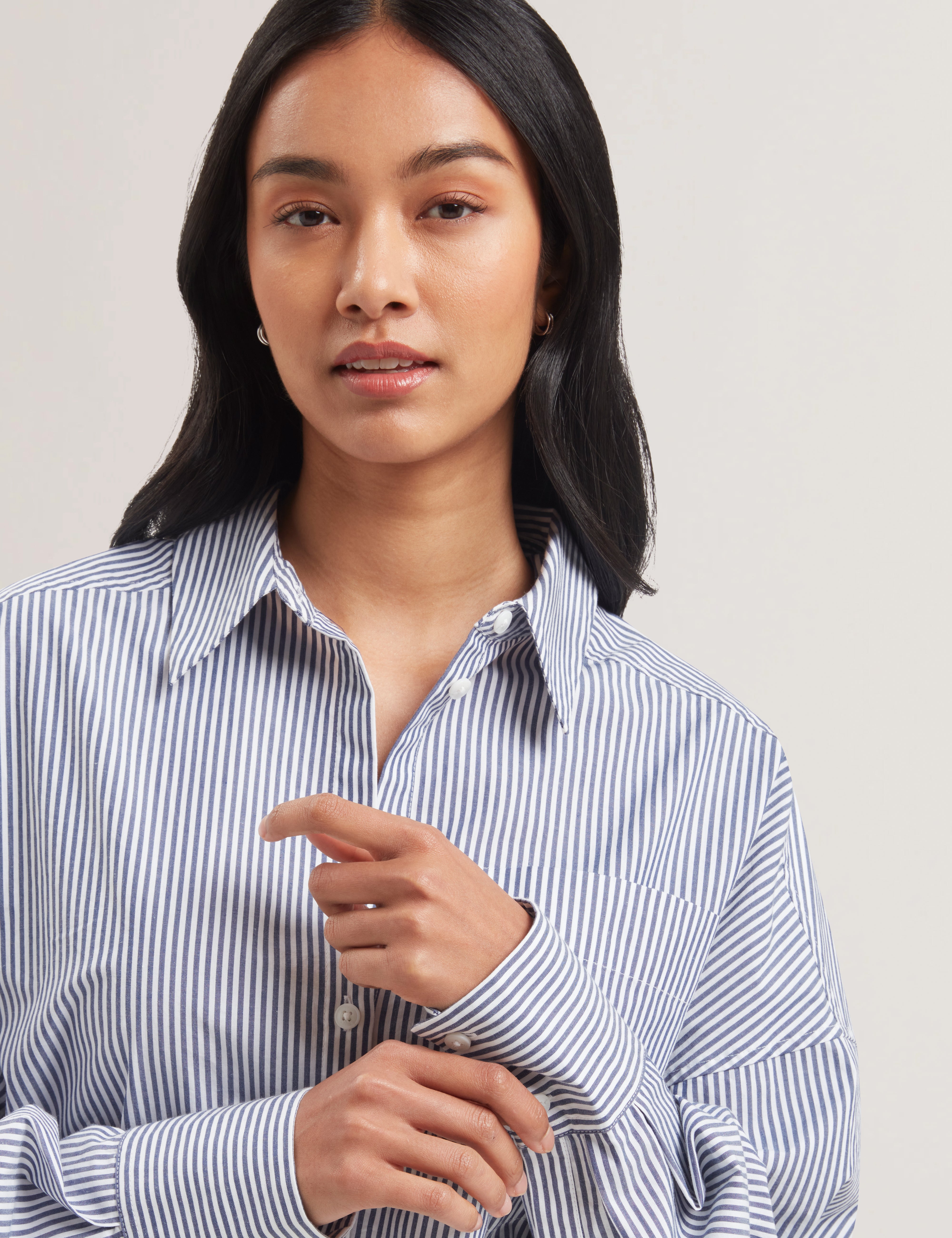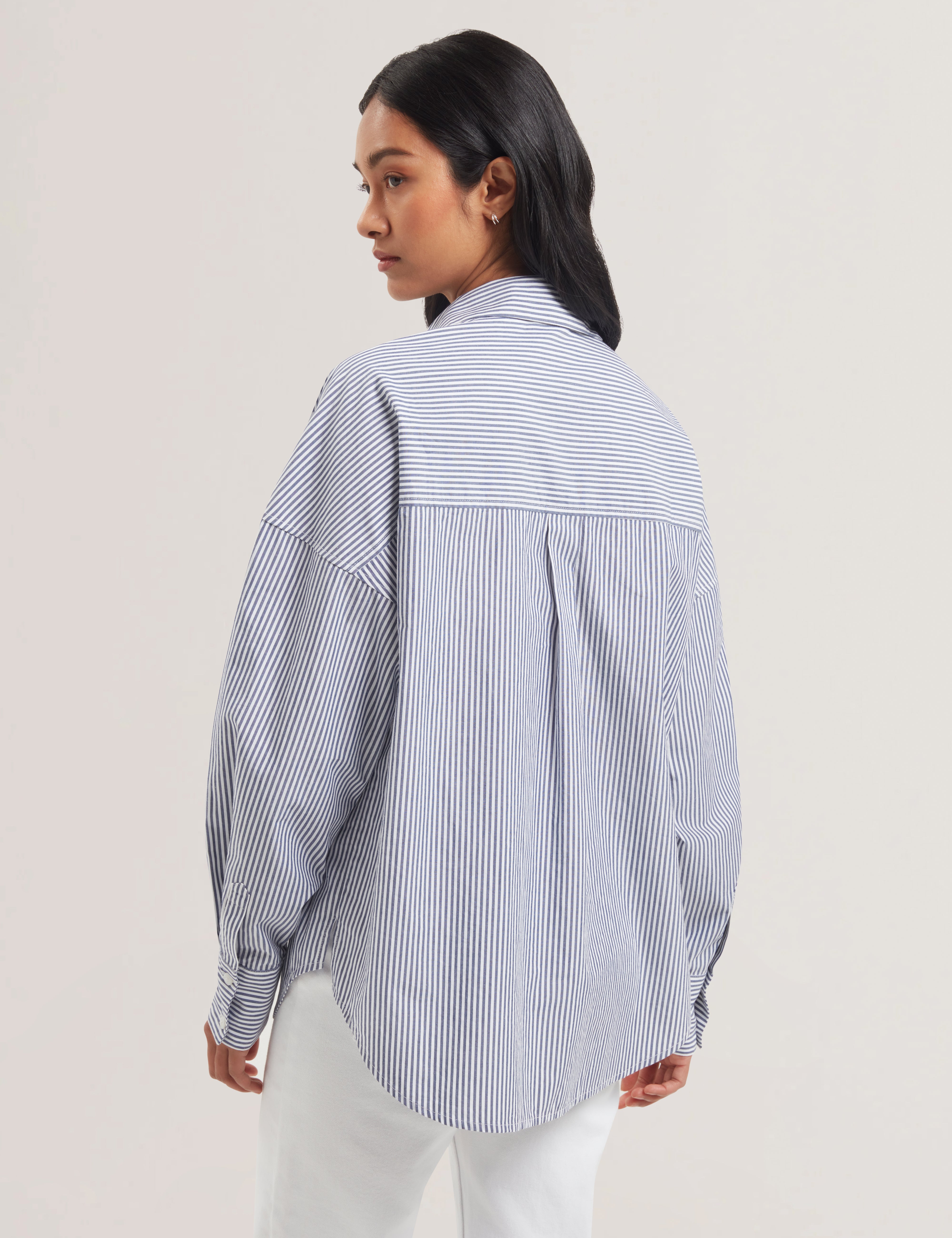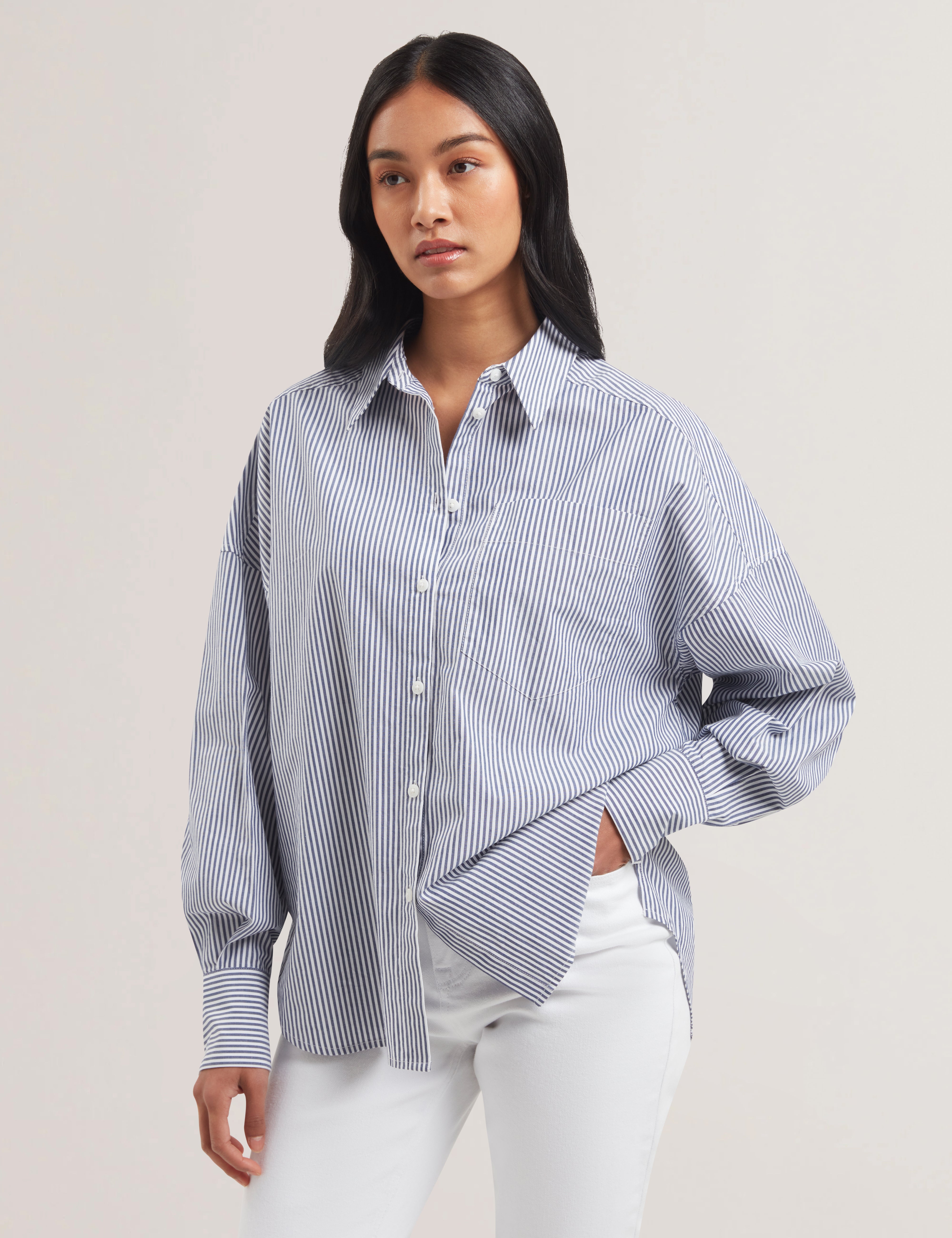 - Relaxed boyfriend fit with classic striped pattern