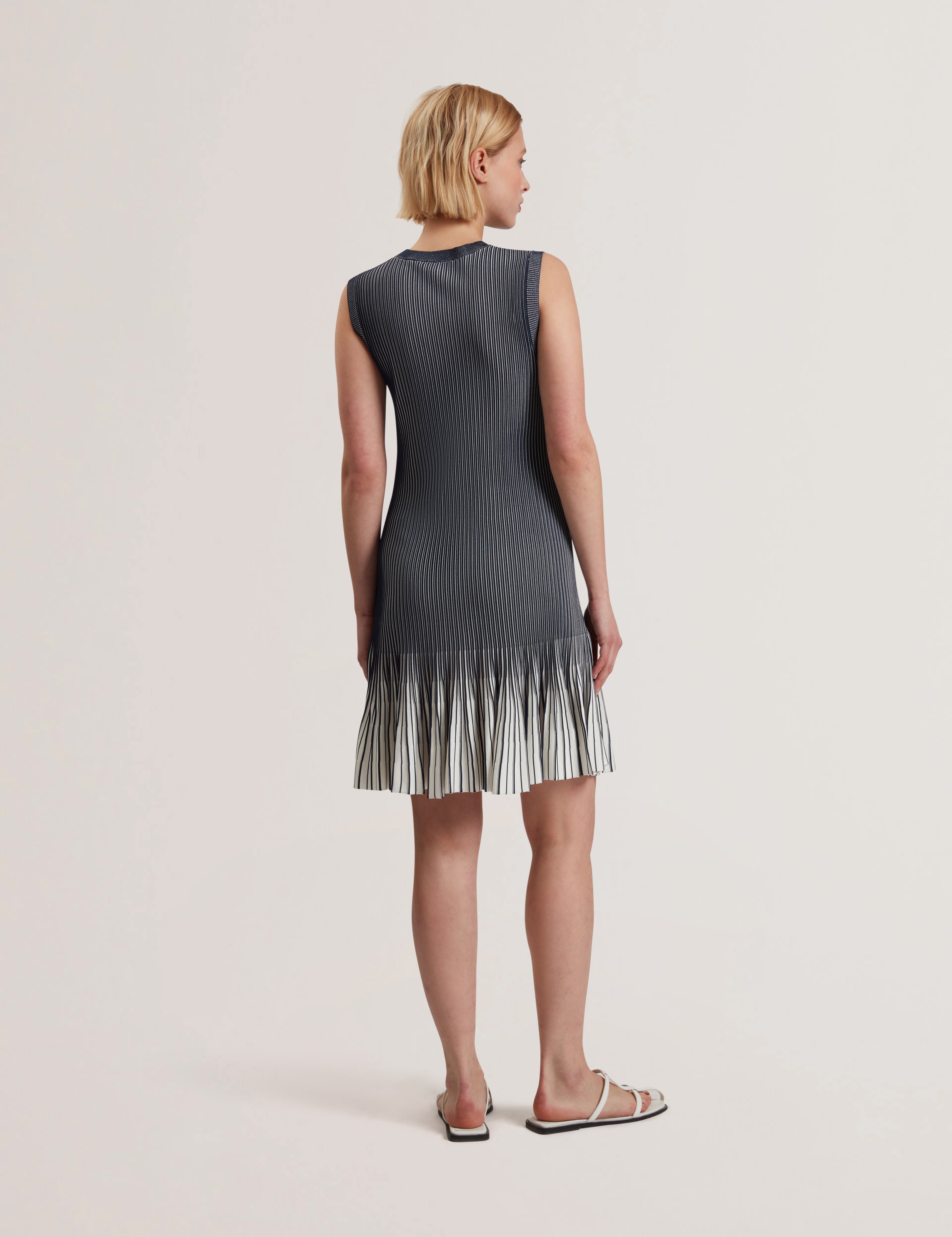 Women's LILYO-Textured Stripe Flippy Skirt Mini Dress Navy