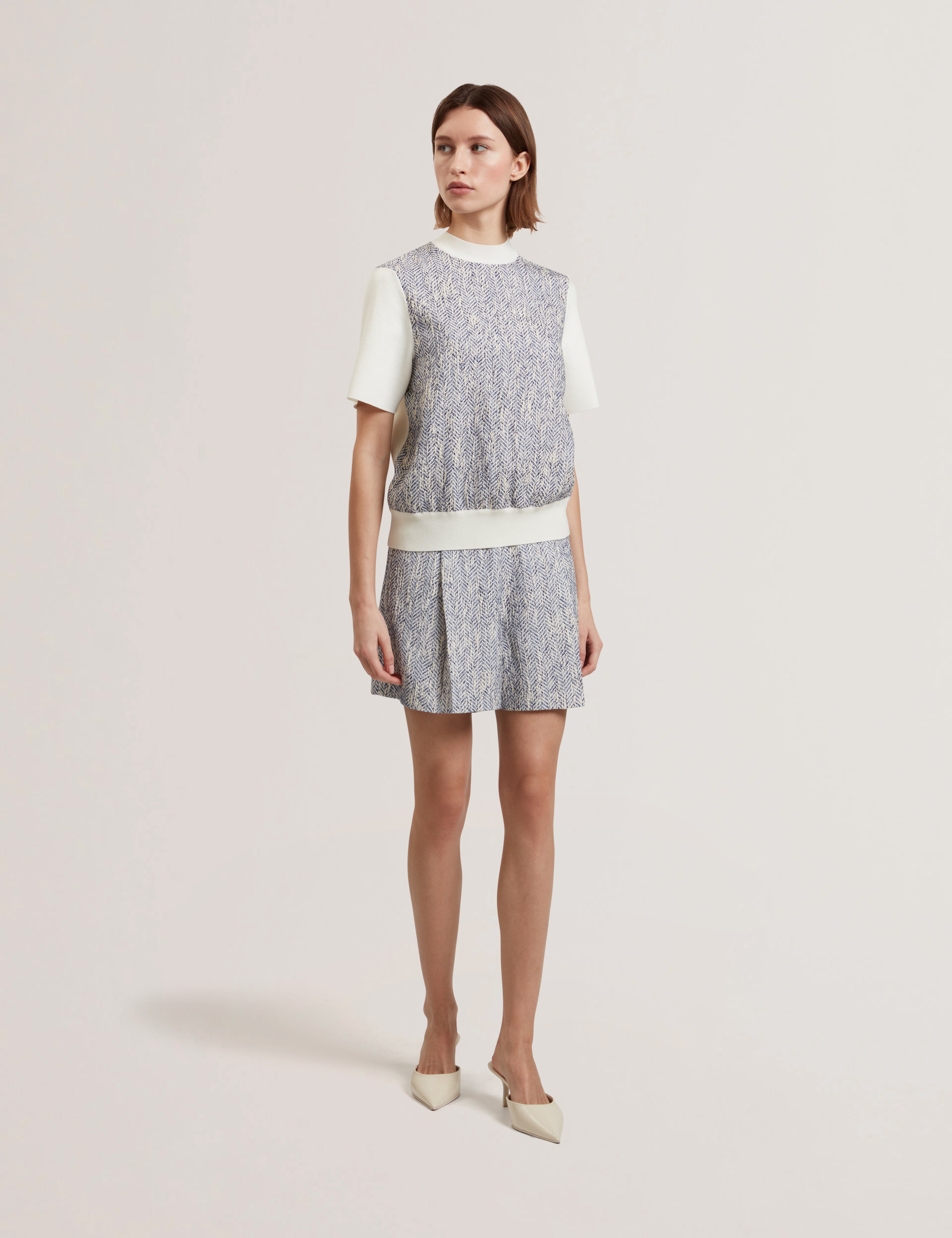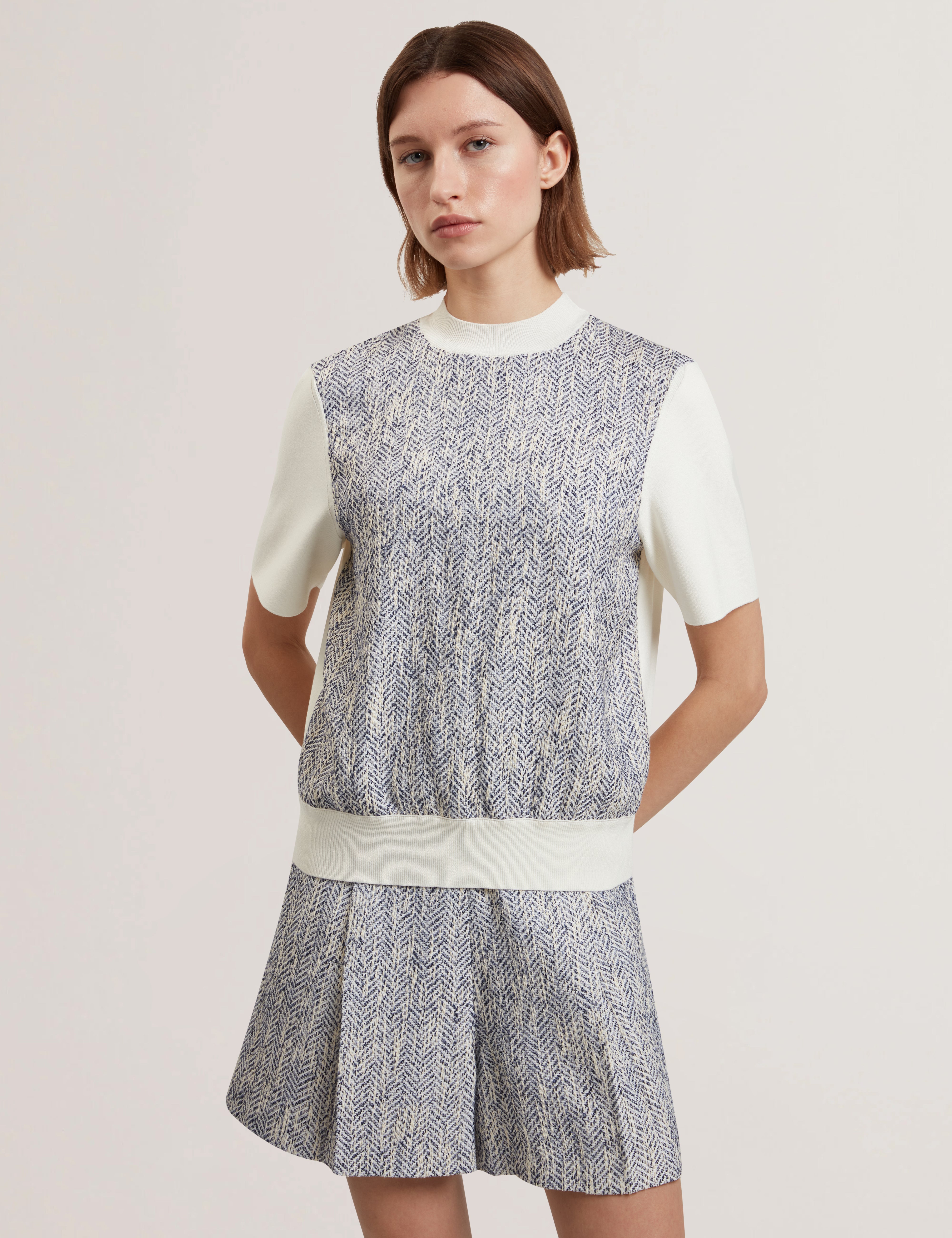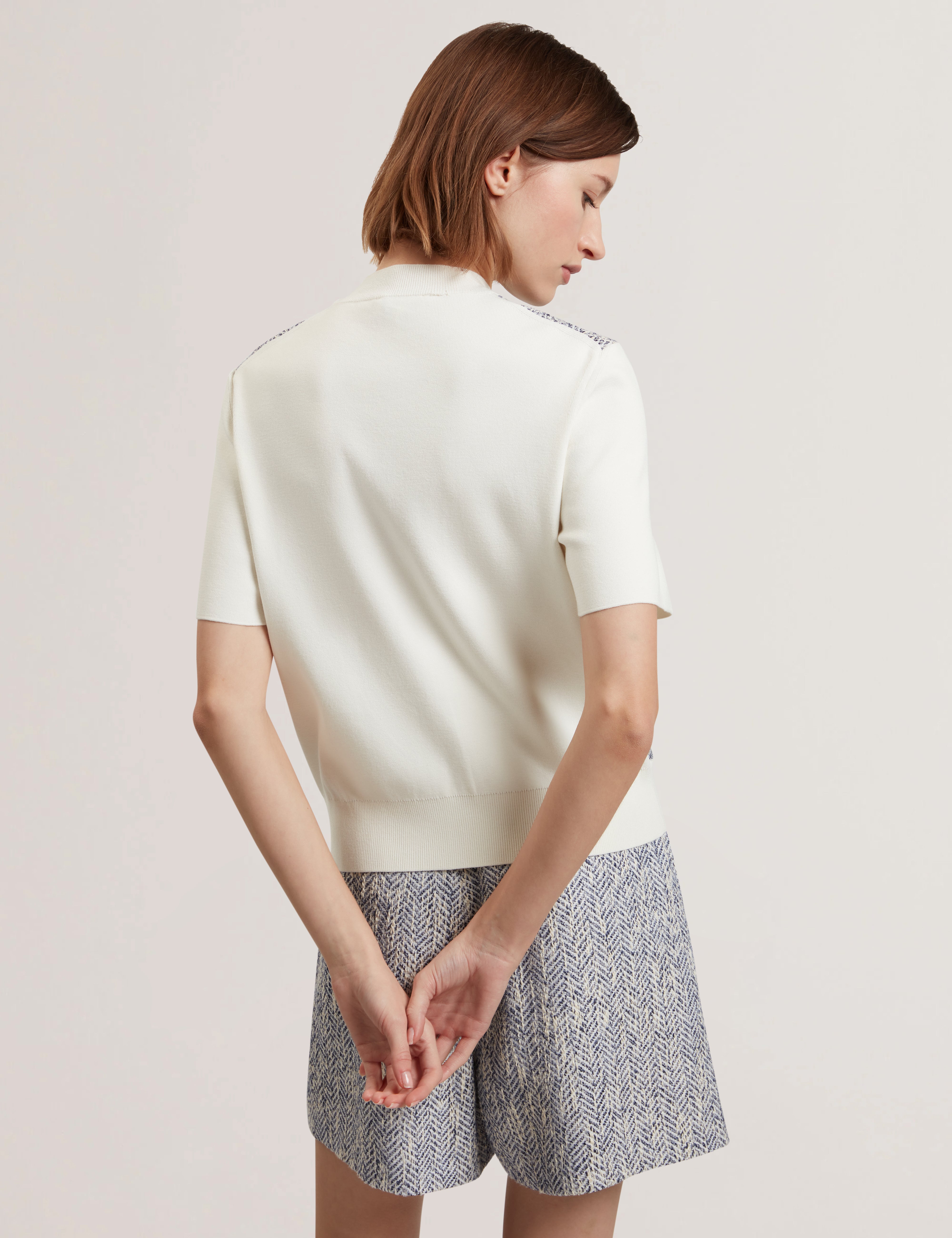 EZZELI: Boucle Front Short Sleeve Sweater