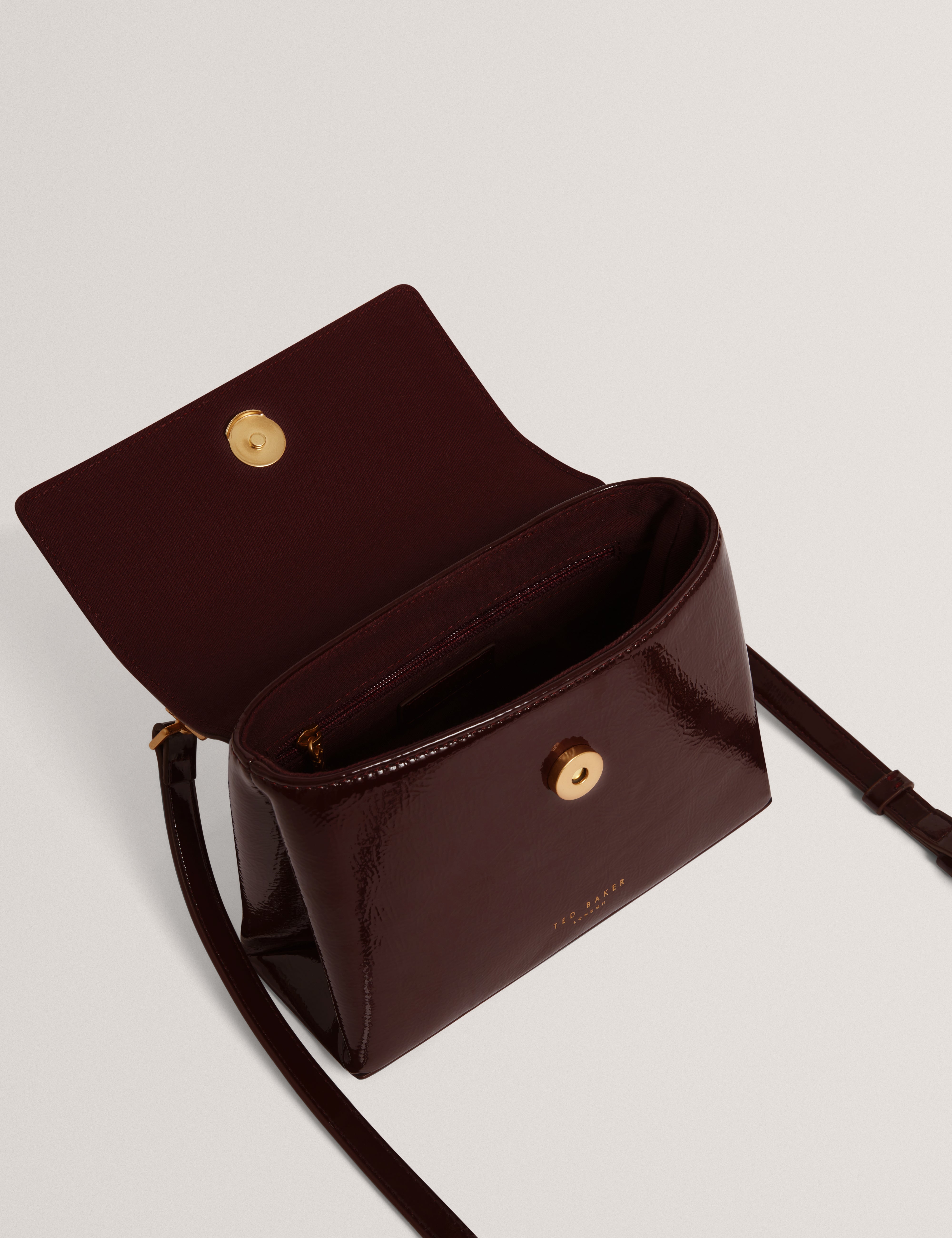 ROSEAU packs big glamour into a small bag, crafted from a crinkled patent PU and topped with our signature rose detail in luxe gold-tone hardware. Carry it by the elegant top handle or wear with the adjustable shoulder strap for hands-free style.