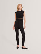 The AMBERIA Fitted Knit Top features a sleek silhouette with subtle yarn pane details, adding a touch of modernity. Its fitted design makes it an easy, stylish layering piece.