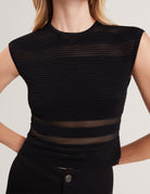 AMBERIA: Fitted Knit Top With Invisible Yarn Pane
