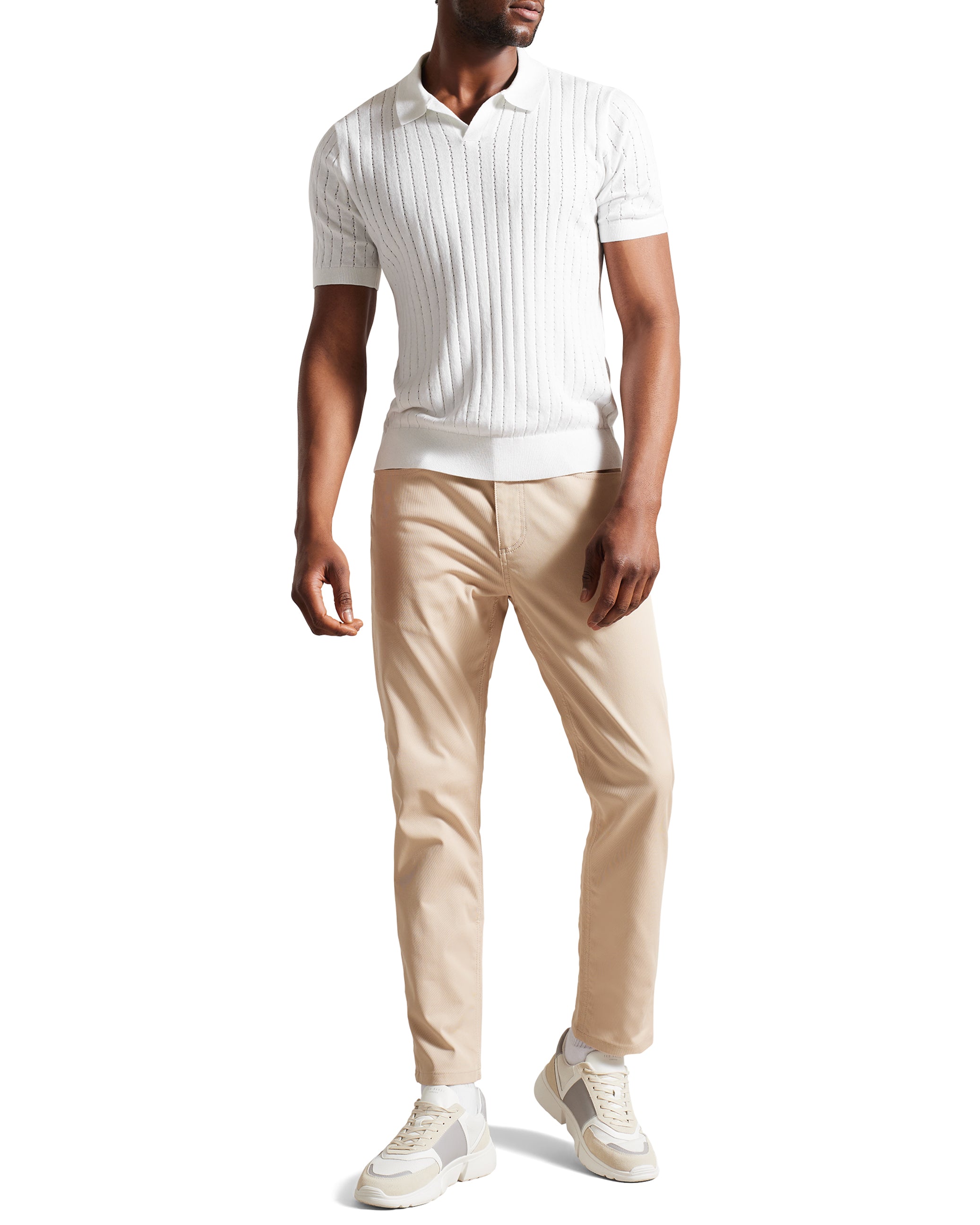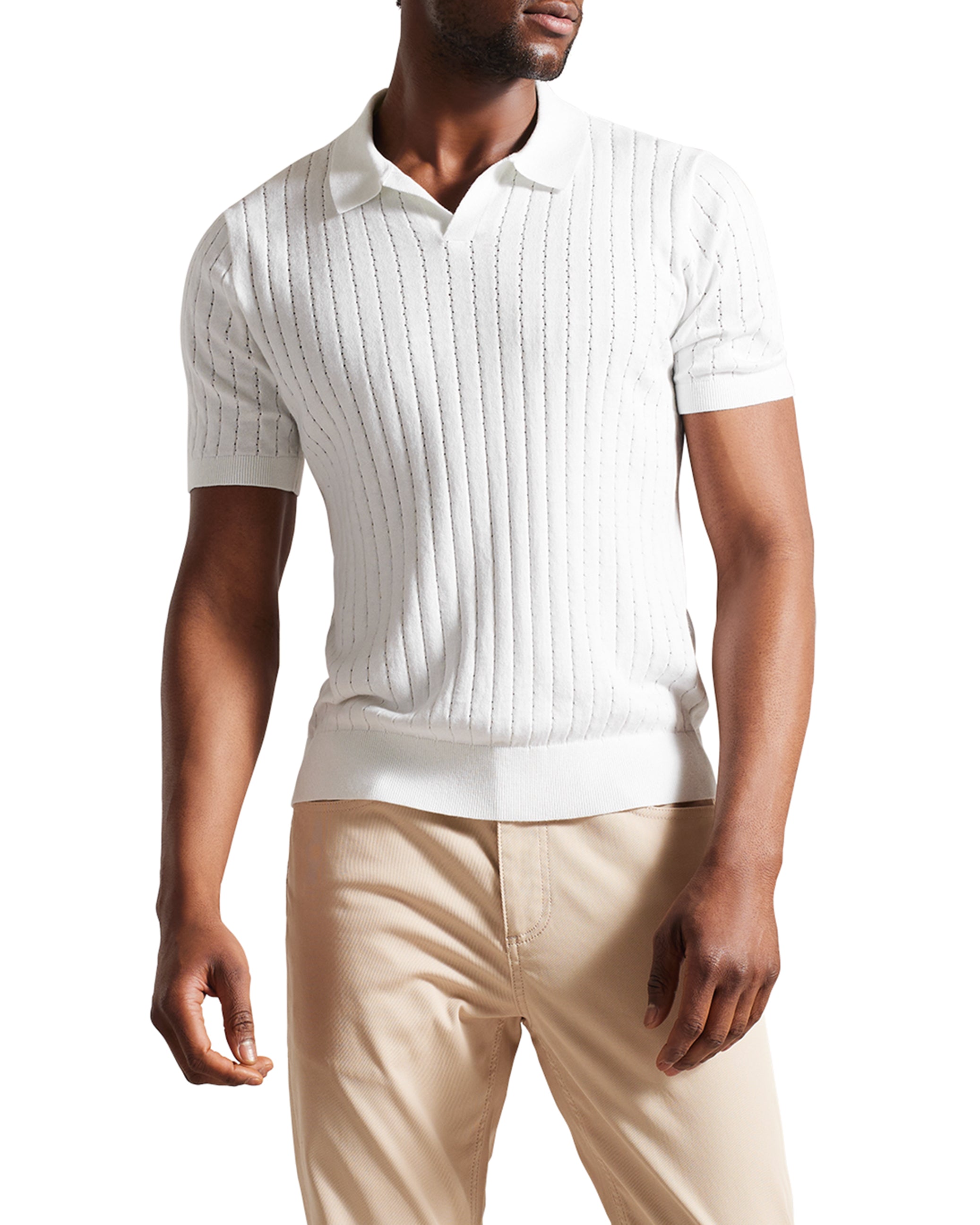 Men's Botany-Ss Regular Open Collar Polo White