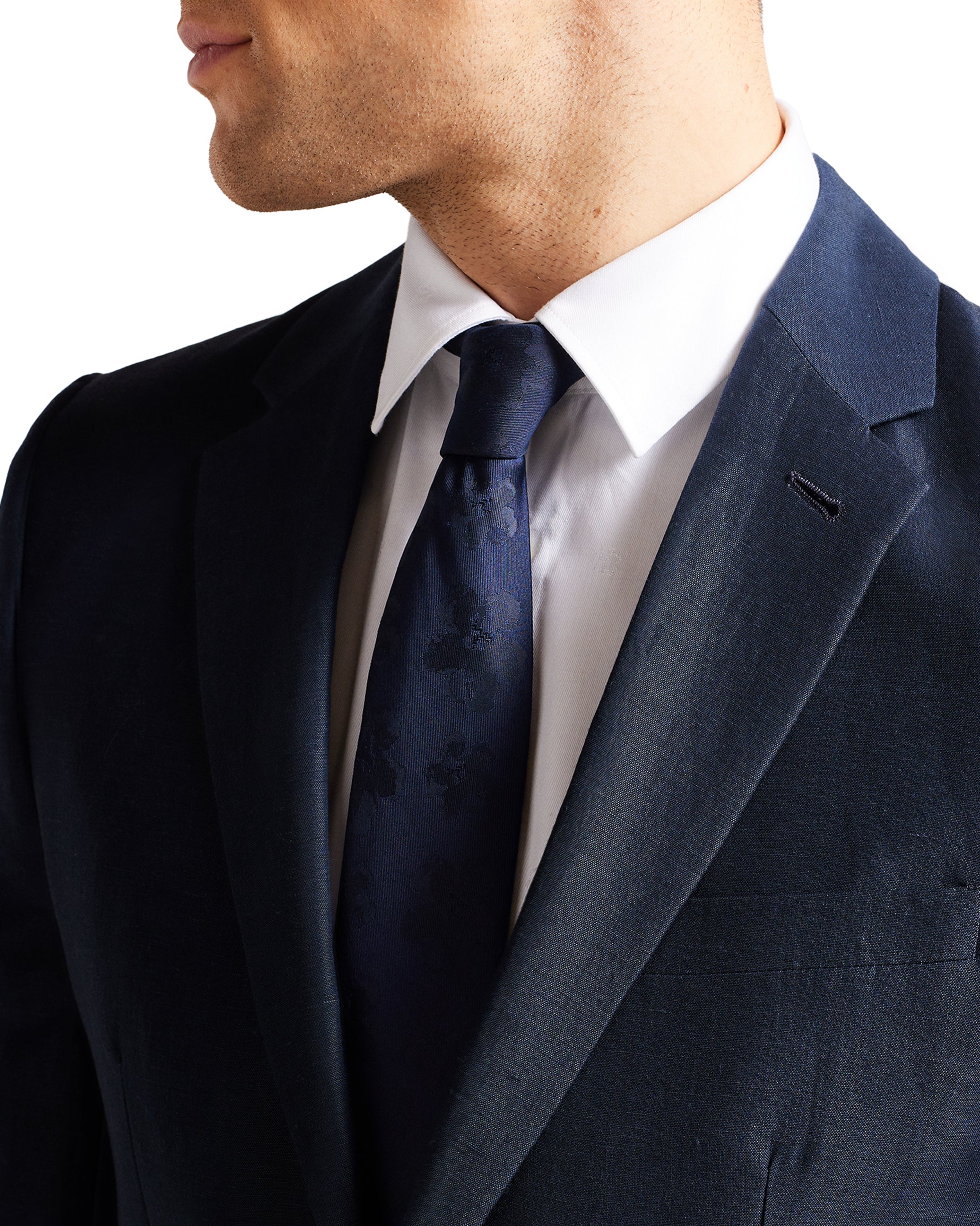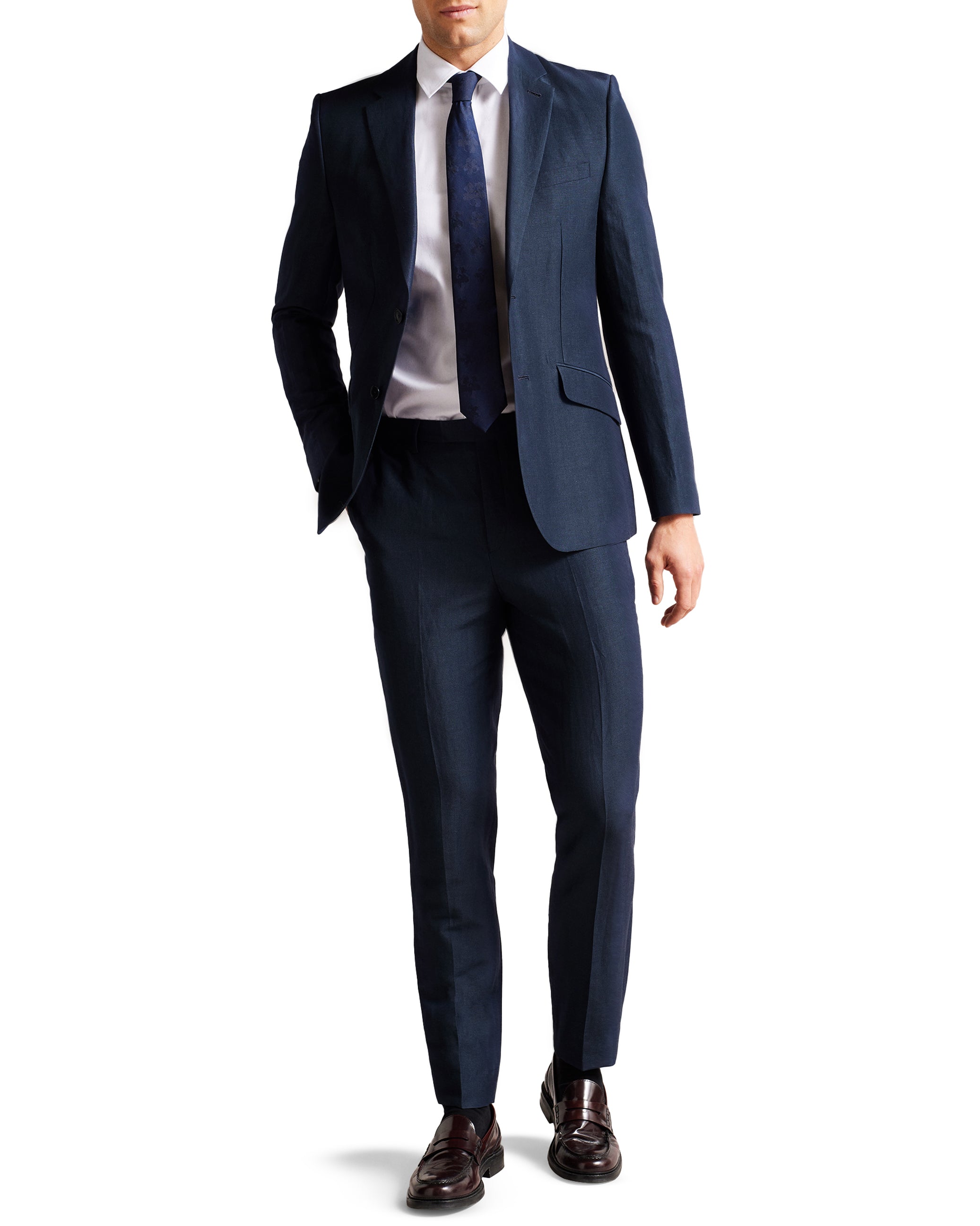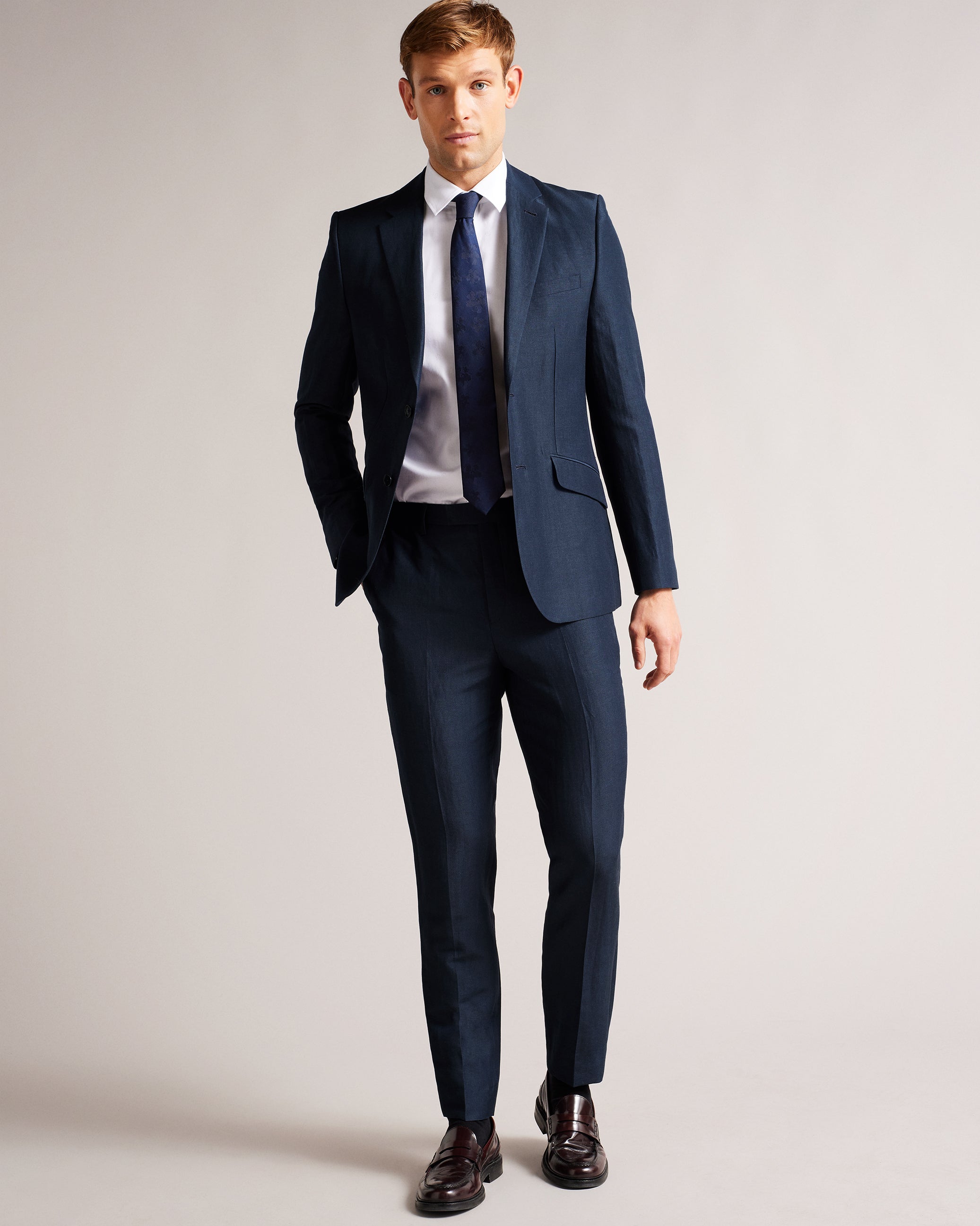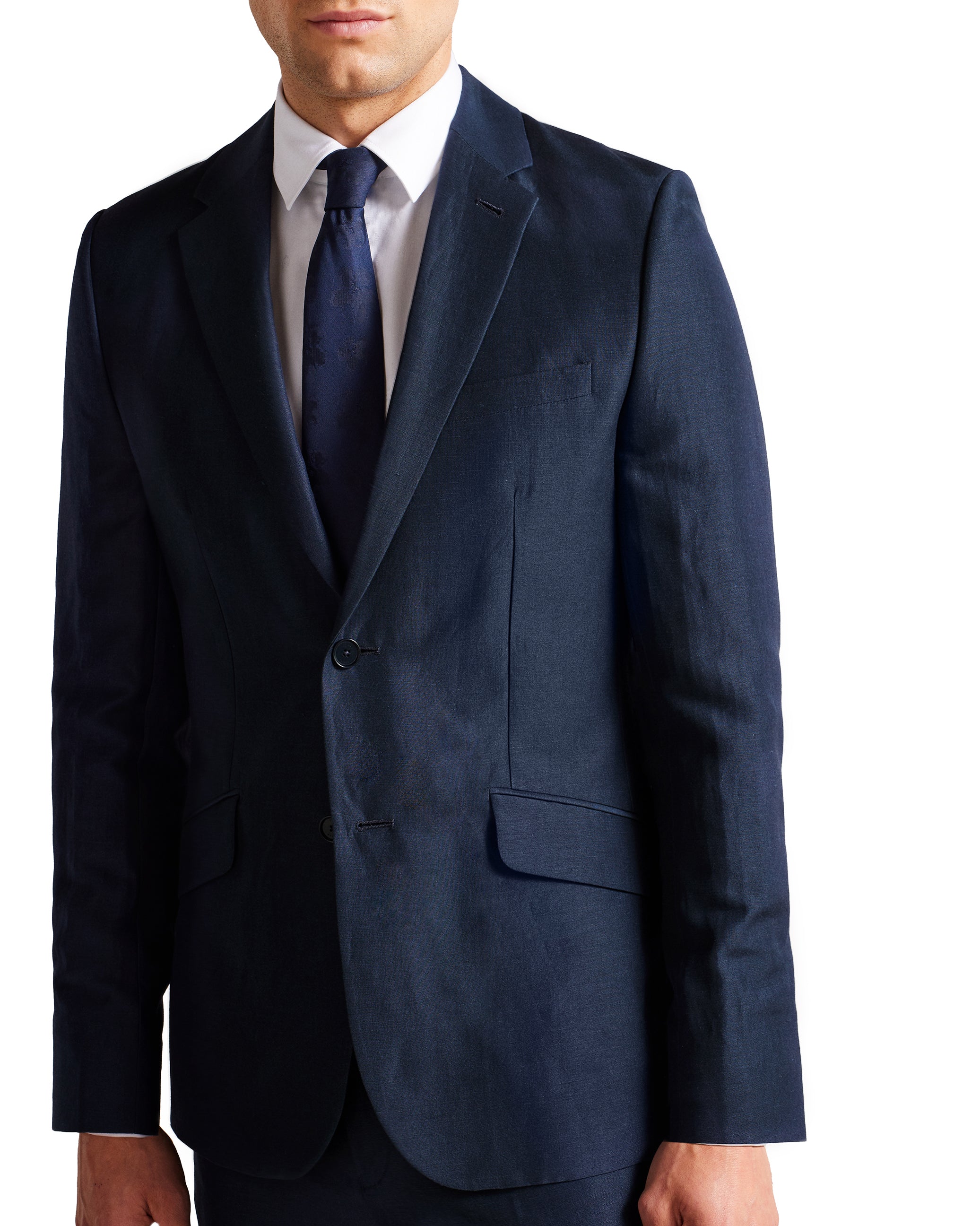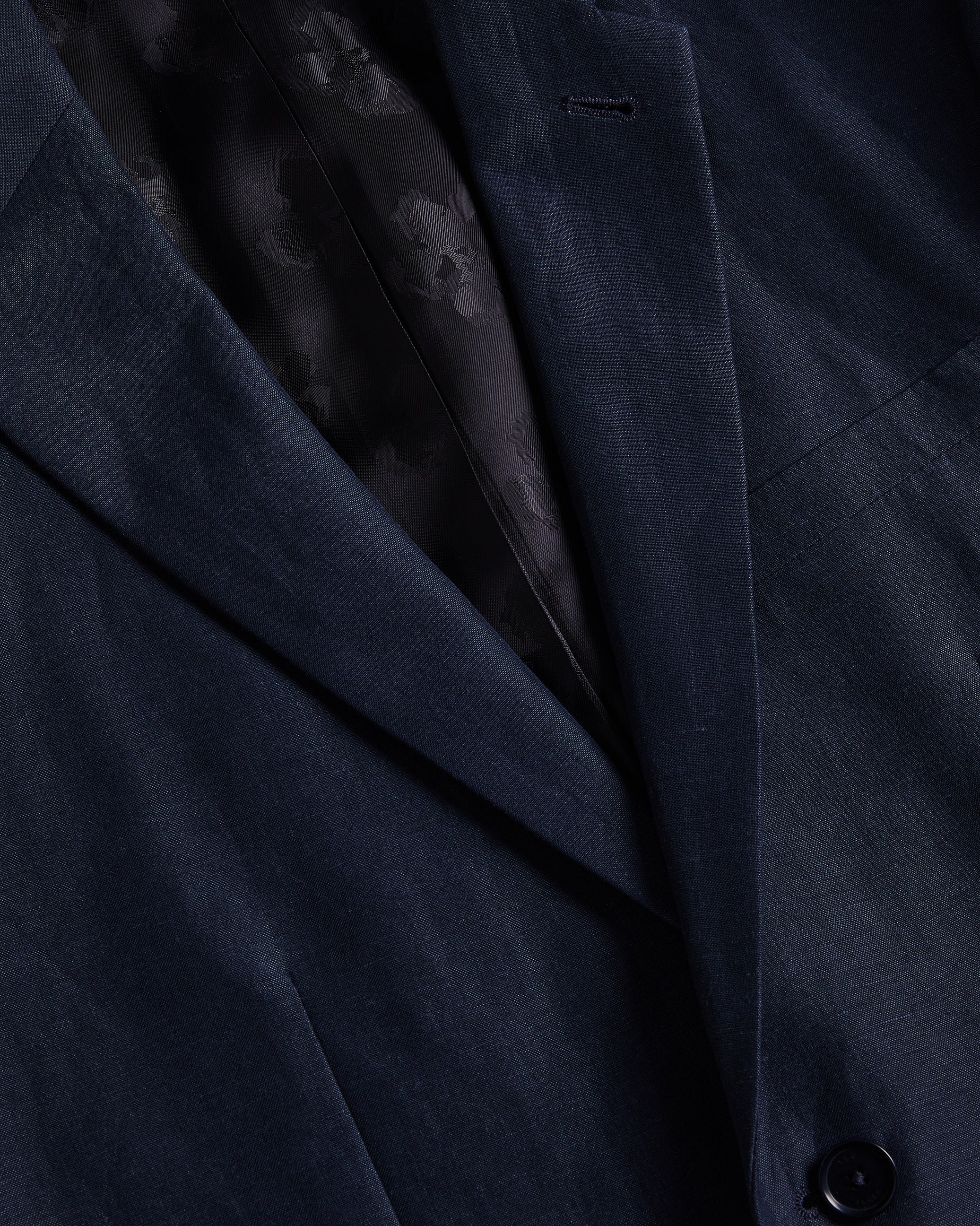 Look sharp in LANCEJ, a luxe blazer in a wool and linen blend that has all the details covered. With a jacquard magnolia lining, it features single breasted buttons and long sleeves.