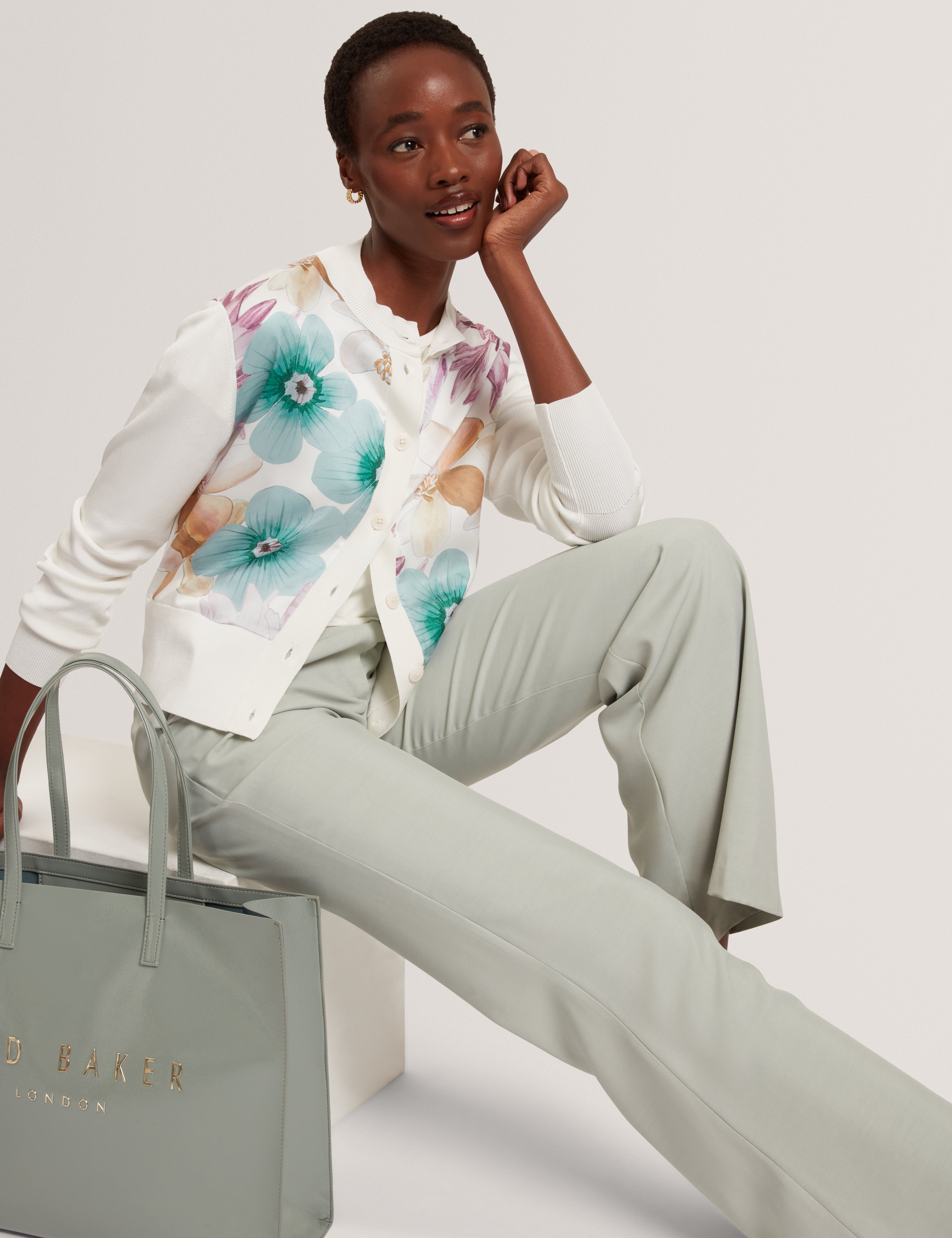 A refined everyday layer with a statement twist, VARRLA features a classic crew neckline, button-through front and a woven panel adorned with a soft watercolour floral print. Feminine, polished and easy to style — the perfect blend of comfort and modern elegance.