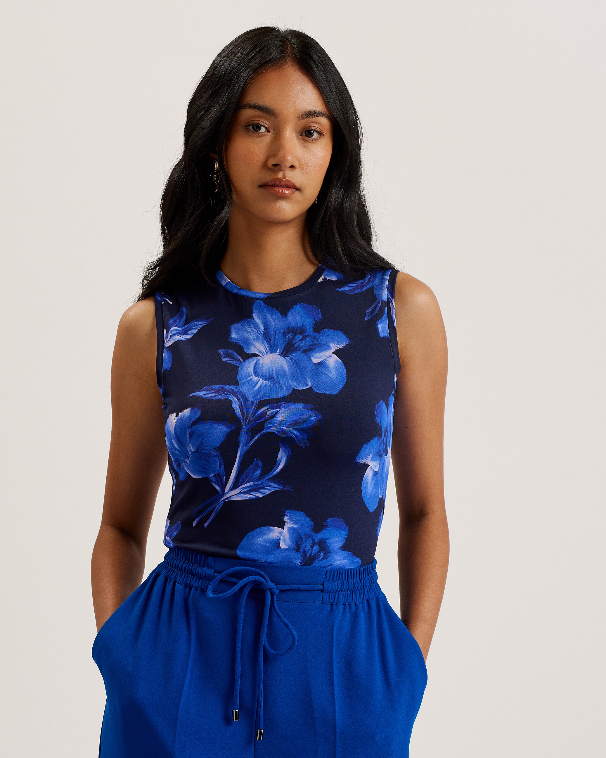 Women's Delanah-Sleeveless Printed Jersey Vest Blue